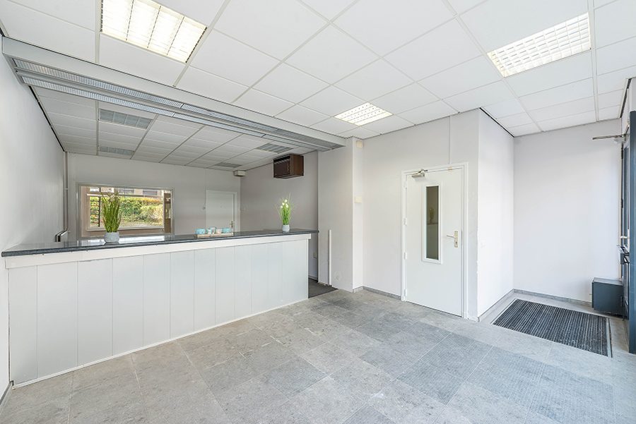 Ruime winkelruimte/bedrijfsruimte ca. 7.50 x 4.00 met systeemplafond en goede zichtlocatie naar de winkelstraat.