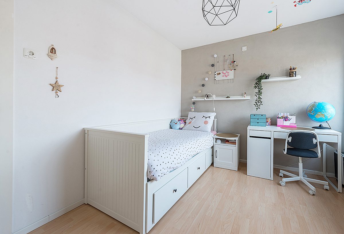 Overloop met grindvloer, drie slaapkamers resp. ca. 3.56 x 3.27, 3.59 x 2.77 en 3.27 x 2.30 alle slaapkamers zijn v.v. een laminaatvloer.