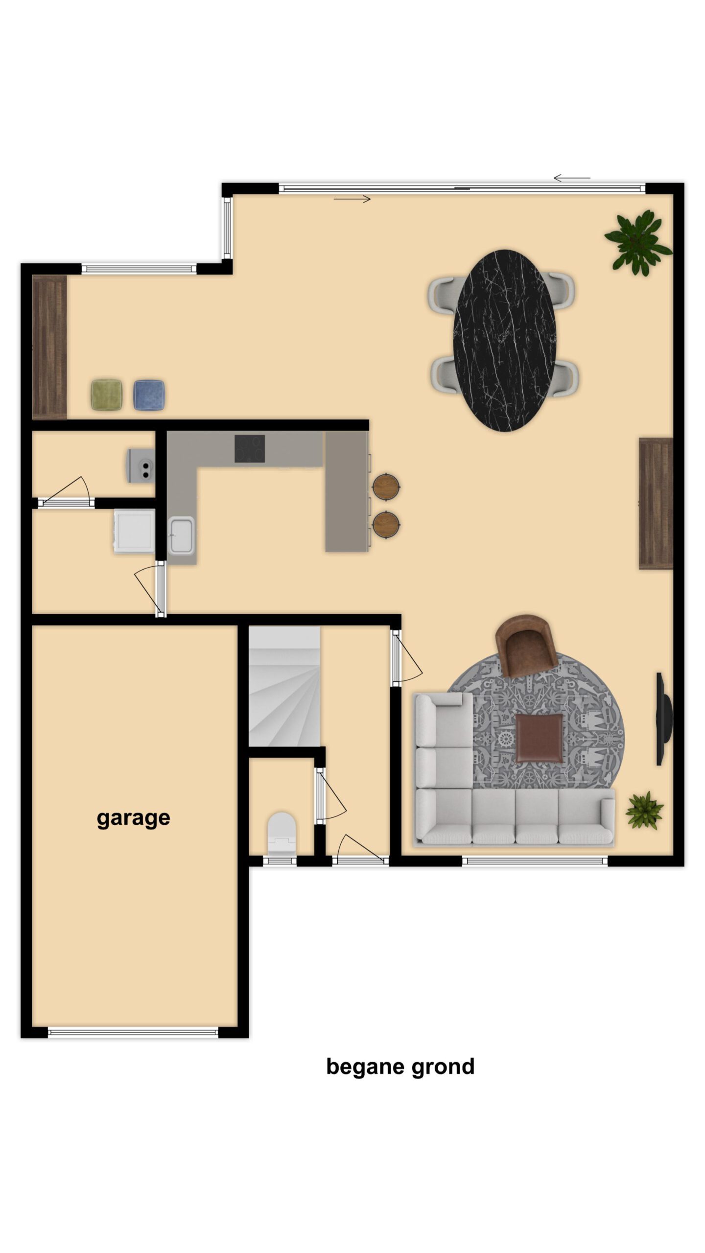 Inpandige doorgang naar de garage ca. 5.00 x 2.70 met elektrische poortopener en toegang tot het souterrain.