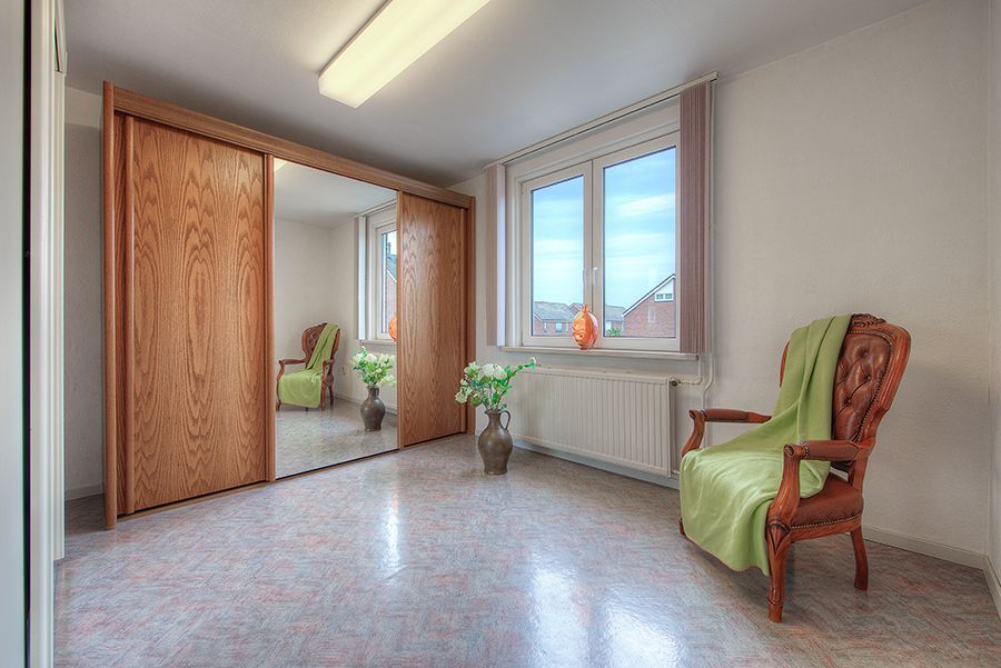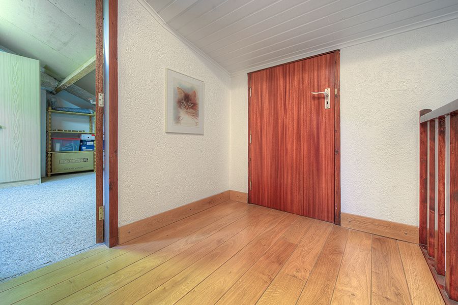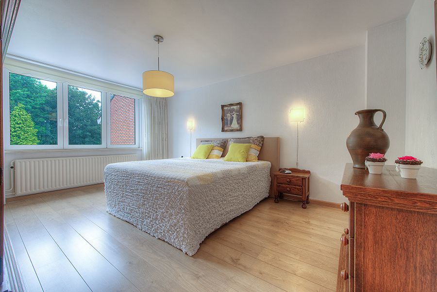 Overloop met laminaatvloer, oudersslaapkamer ca. 5.00 x 3.80 met laminaatvloer, slaapkamer 2 ca. 3.80 x 3.30 en slaapkamer 3 ca. 3.06 x 2.61 met laminaatvloer. Op de overloop separate berging met aansluitpunten wasautomaat en droger.