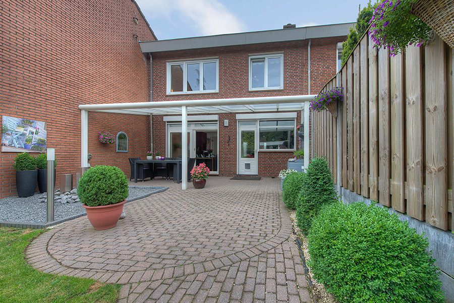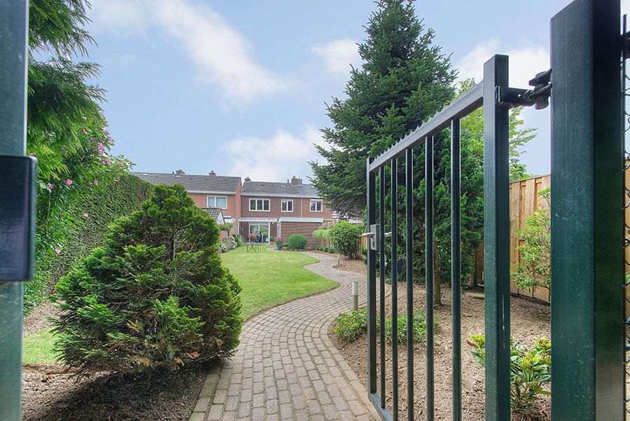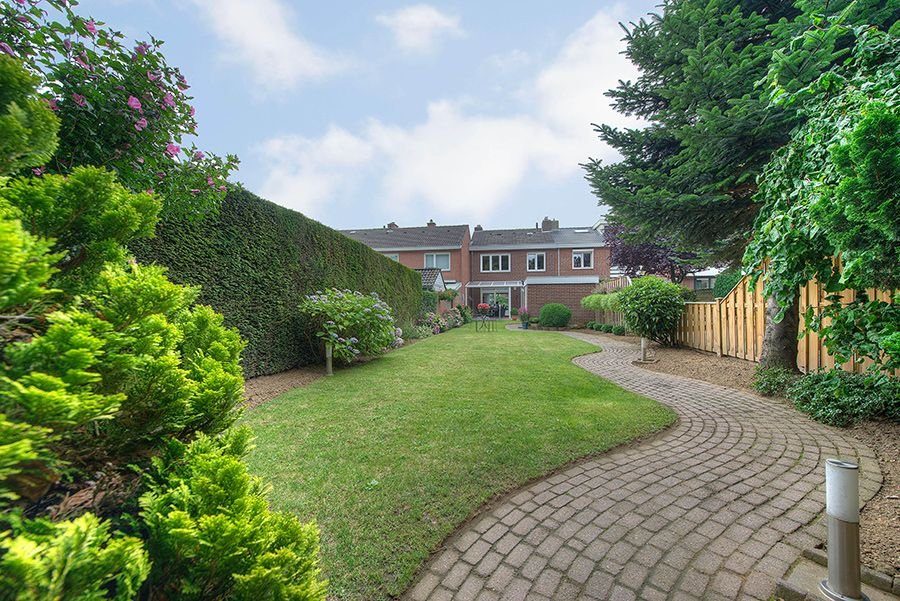 Overdekt zonneterras en zeer fraai aangelegde ca. 31 m. diepe siertuin met buitenberging. De tuin is middels pad aan de achterzijde bereikbaar en biedt toegang tot de garage ca. 5.70 x 2.80.