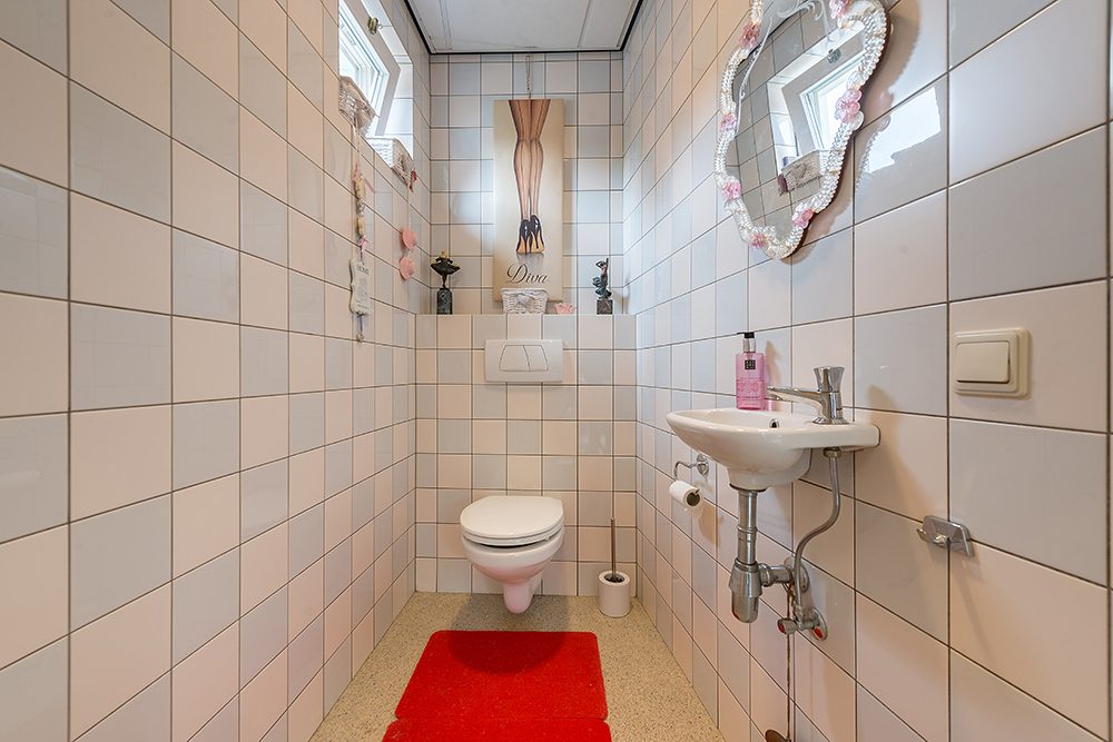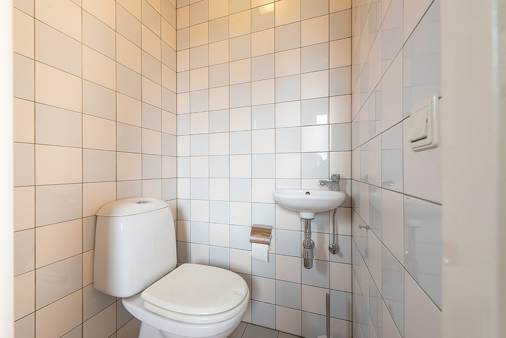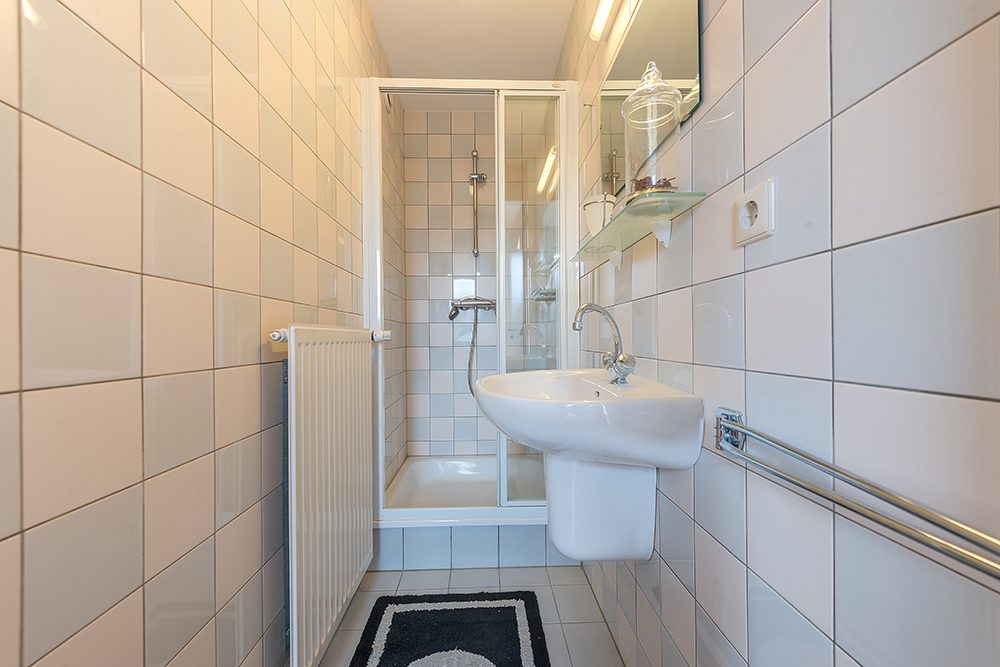 Badkamer met douche en vaste wastafel. Separaat 2e toilet.