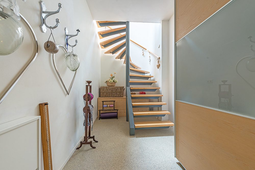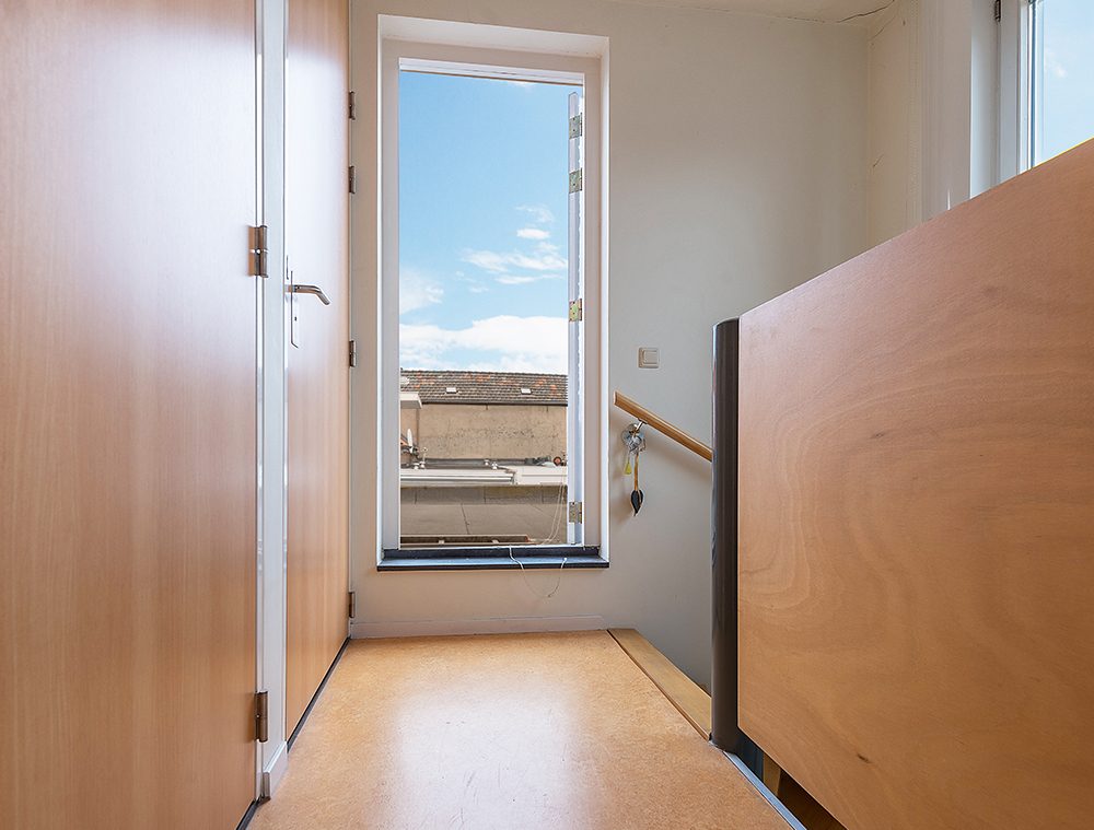 Tussenportaal ca. 3.50 x 2.00 met trap naar de verdieping.