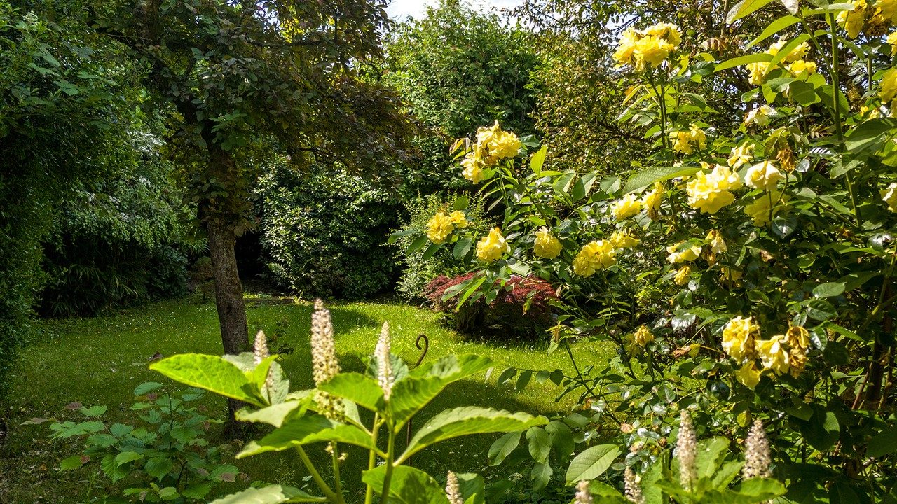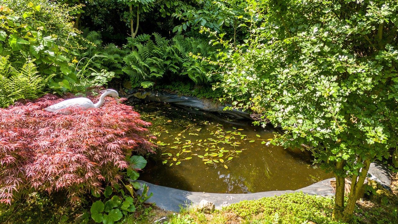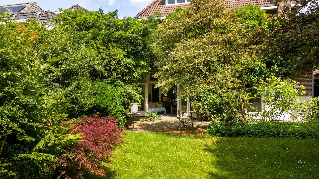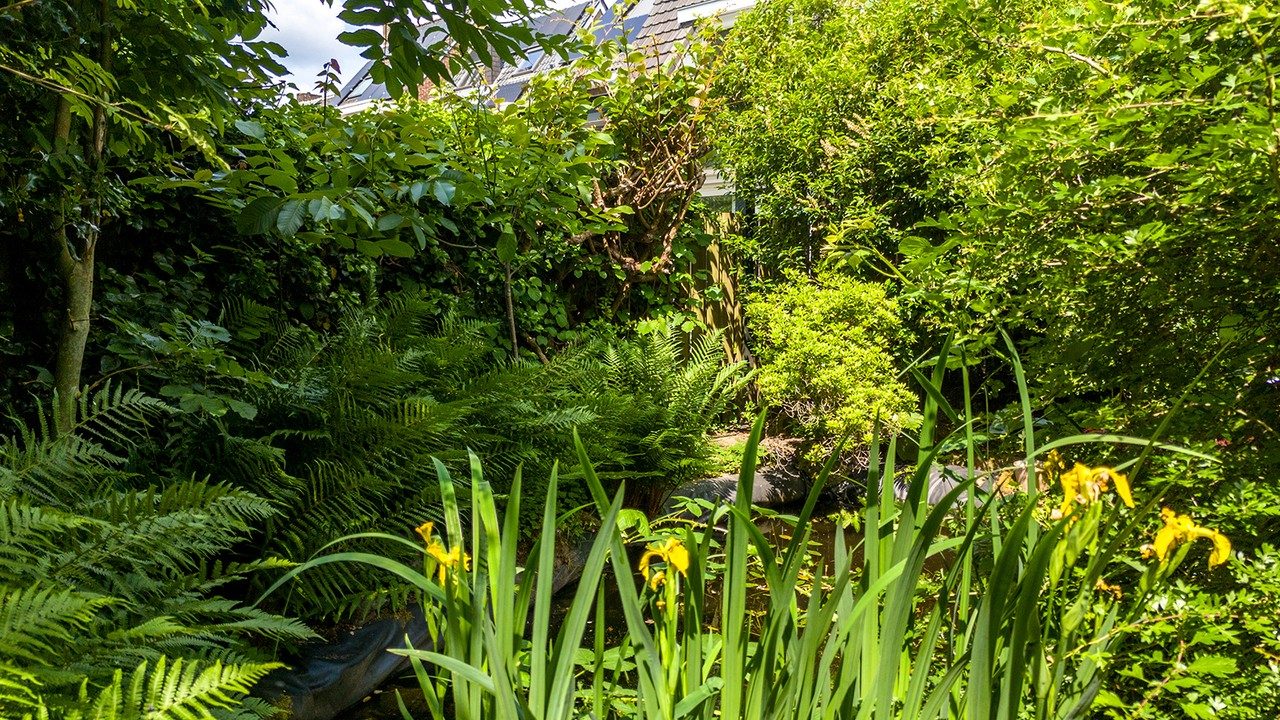 Grote sfeervolle siertuin op het Zuiden gelegen met optimale privacy, vijverpartij en toegang tot de
