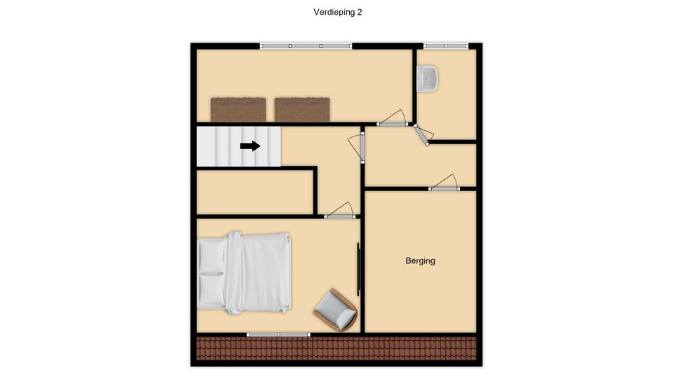 Grote overloop, 3 slaapvertrekken resp. ca. 4.15 x 2.50, 3.20 x 3.20 en 3.50 x 2.50.