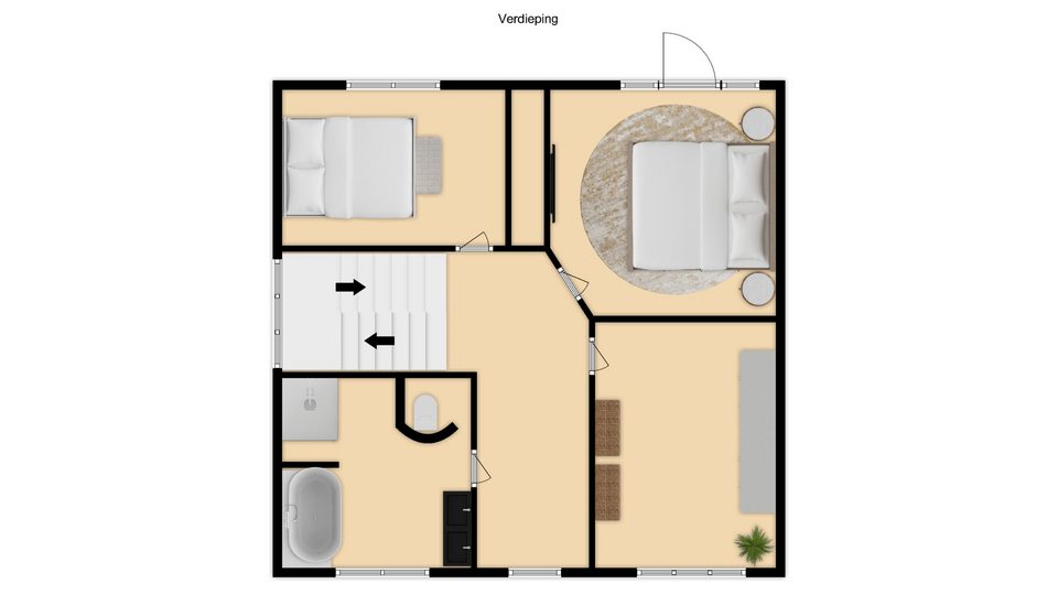 Drie riante slaapvertrekken resp. ca. 4.80 x 3.70, 4.90 x 4.50 met wastafel en toegang tot het grote