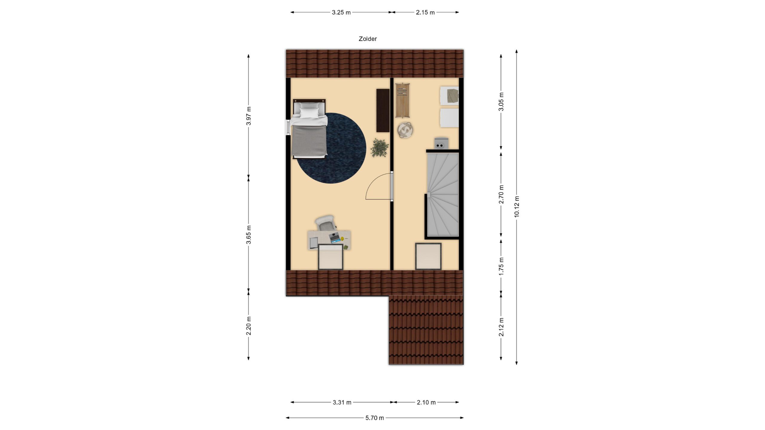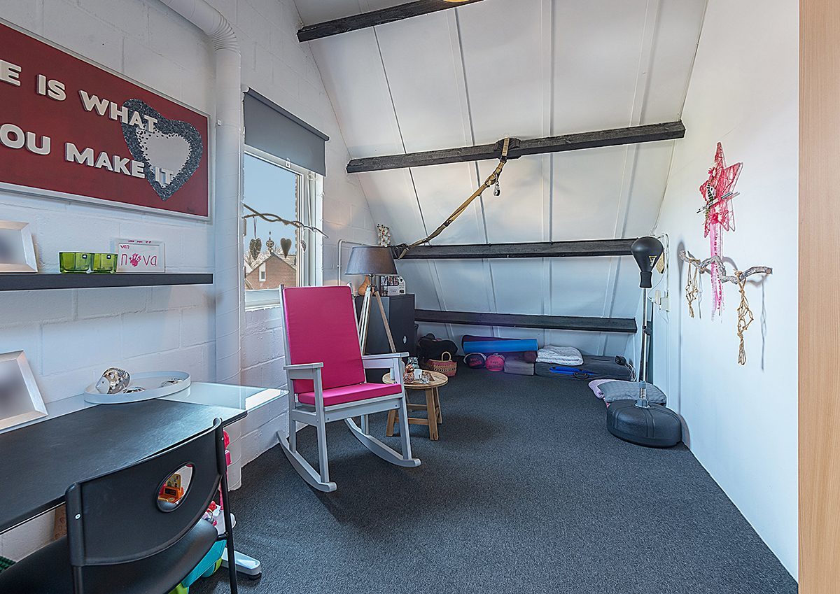 Slaapkamer 4 ca. 5.50 x 2.75 met bergkasten onder de kap.