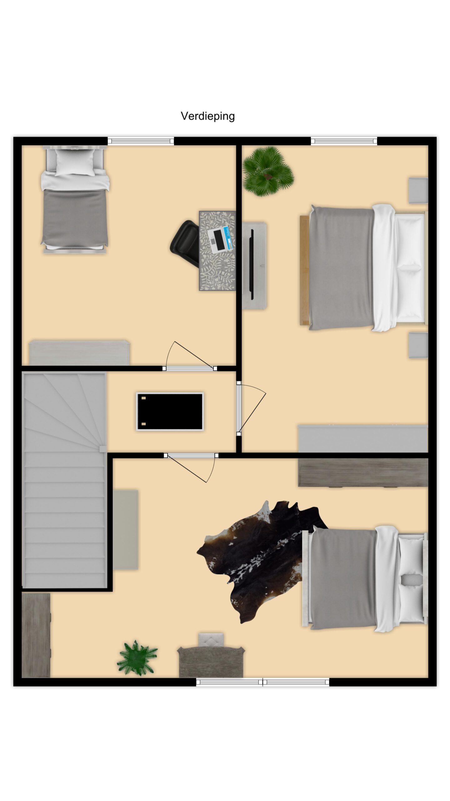 Overloop, drie slaapkamers resp. ca. 10, 9 en 6 m2.