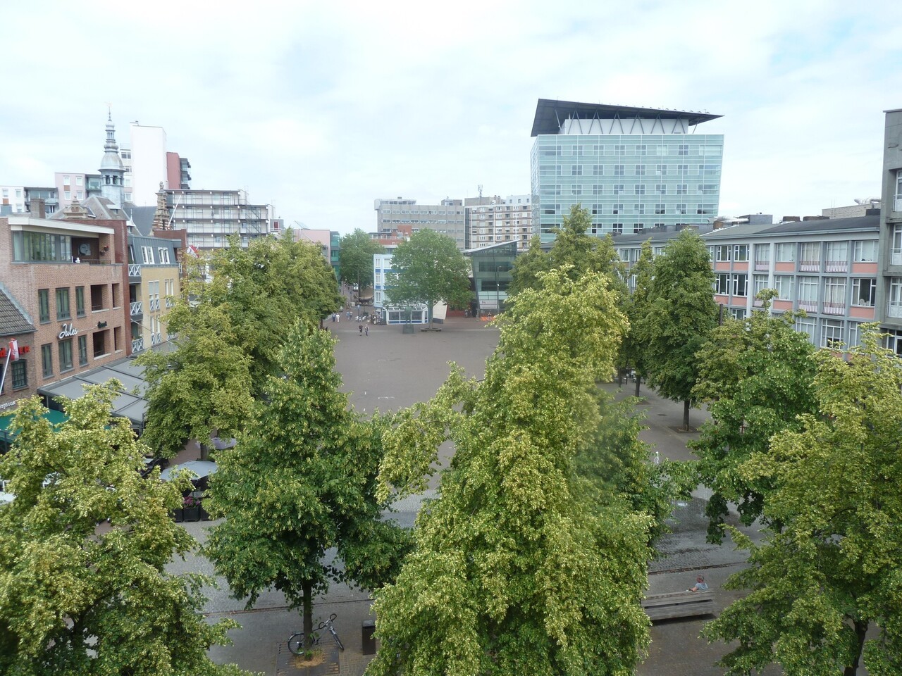 In het centrum van Kerkrade met uitzicht op de Markt bieden wij dit ruin 2 slaapkamer appartement te huur aan op de3e etage met overdekt balkon en dakterras
