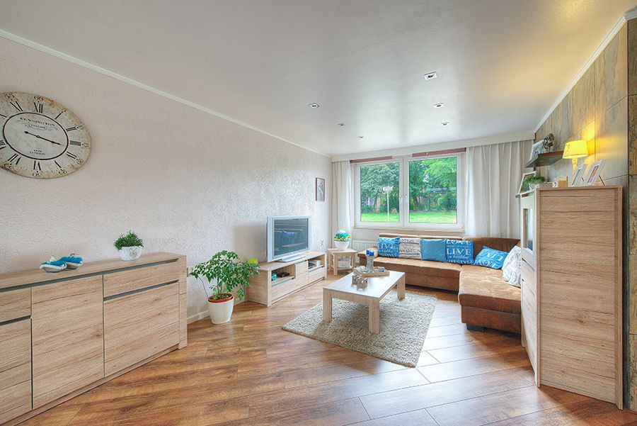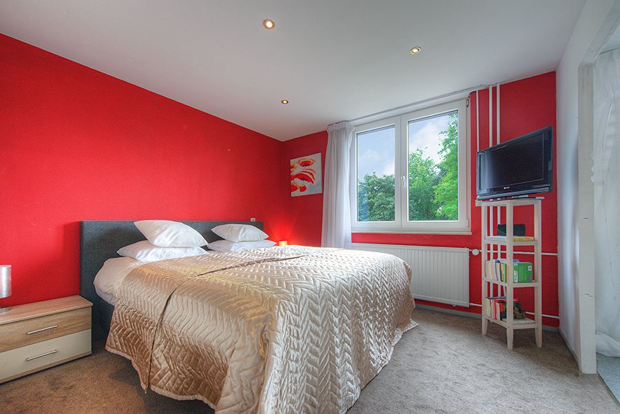 Overloop, drie slaapkamers resp. ca. 3.81 x 3.30 met doorloop naar 2.84 x 2.31 en 3.80 x 3.30 met laminaatvloer. Modern betegelde badkamer met ligbad, wastafelmeubel, 2e toilet en een designradiator.