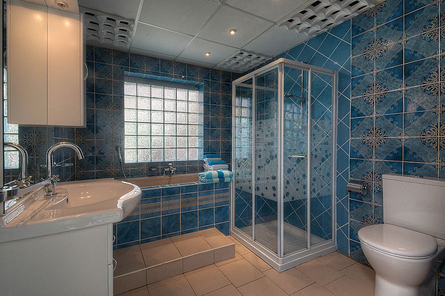 Badkamer ca. 3.10×2.45 met ligbad, douche, wastafel en toilet.