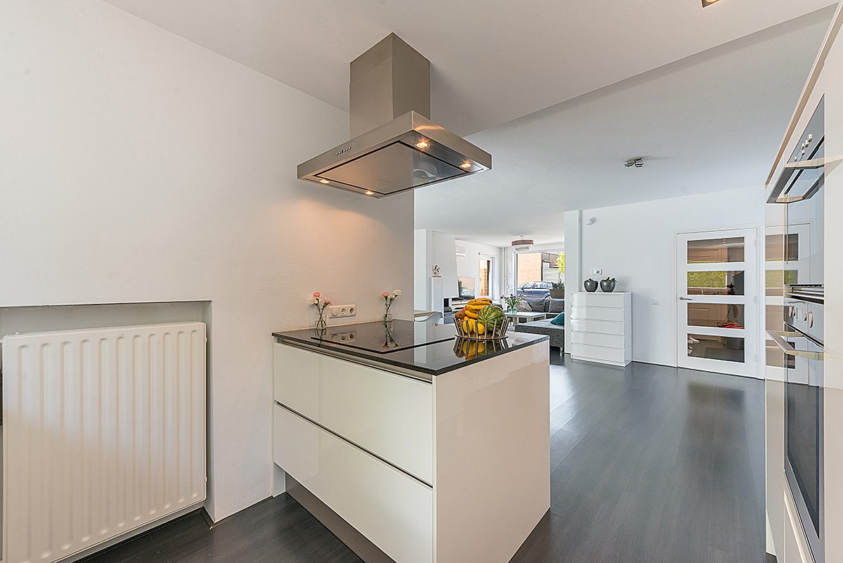 De keuken beschikt over een inductie kookplaat, afzuigkap, oven, combimagnetron en vaatwasser.