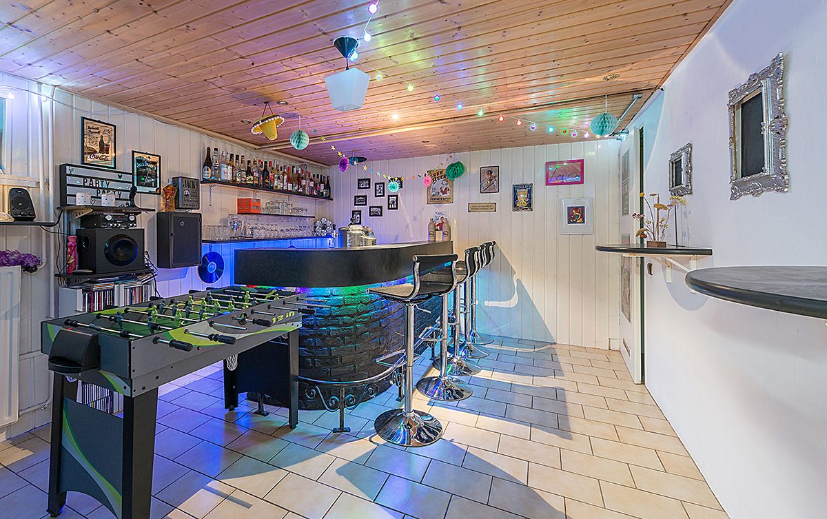 Geheel onderkelderd en verwarmd met o.a. provisiekelder, een feestkelder met bar, wasruimte met keuken en aansluitpunten witgoed, hobbyruimte en werkkelder.