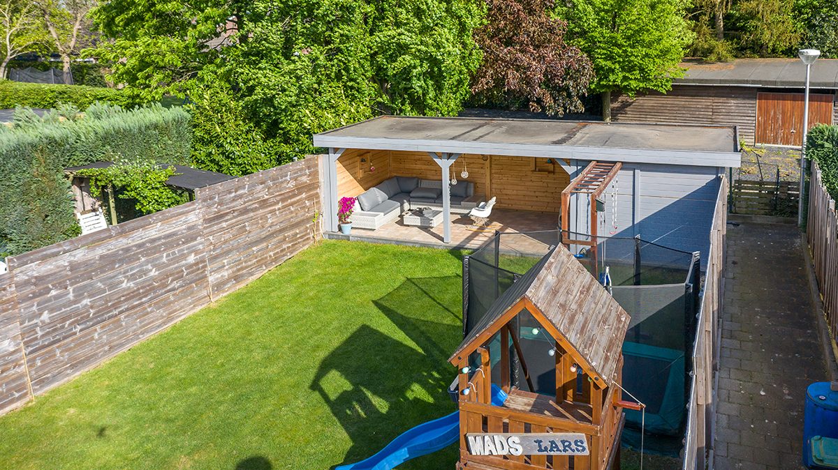 Tuinhuis ca. 3.00 x 3.00 met aansluitend overdekt zonneterras.