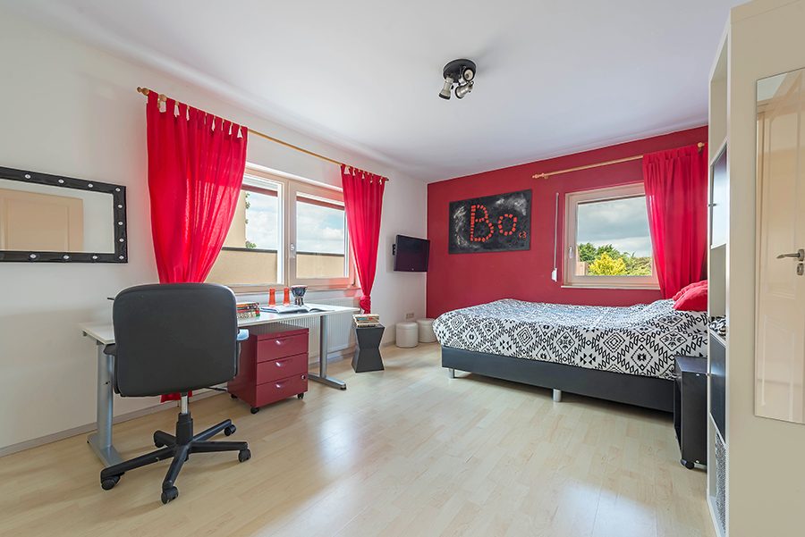 Grote vierde slaapkamer ca. 5.00 x 4.00 met bergkasten onder de kap.