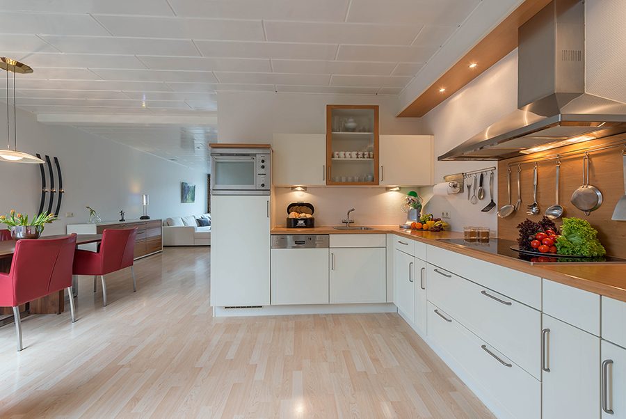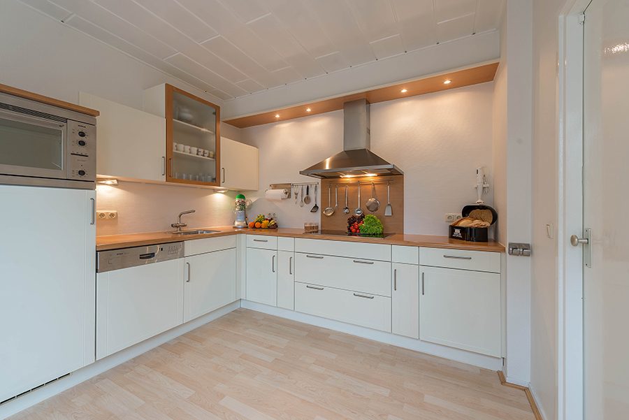 Open verbinding naar de keuken ca. 3.00×3.00 met moderne aanbouwkeuken in hoekopstelling v.v. keramische kookplaat,