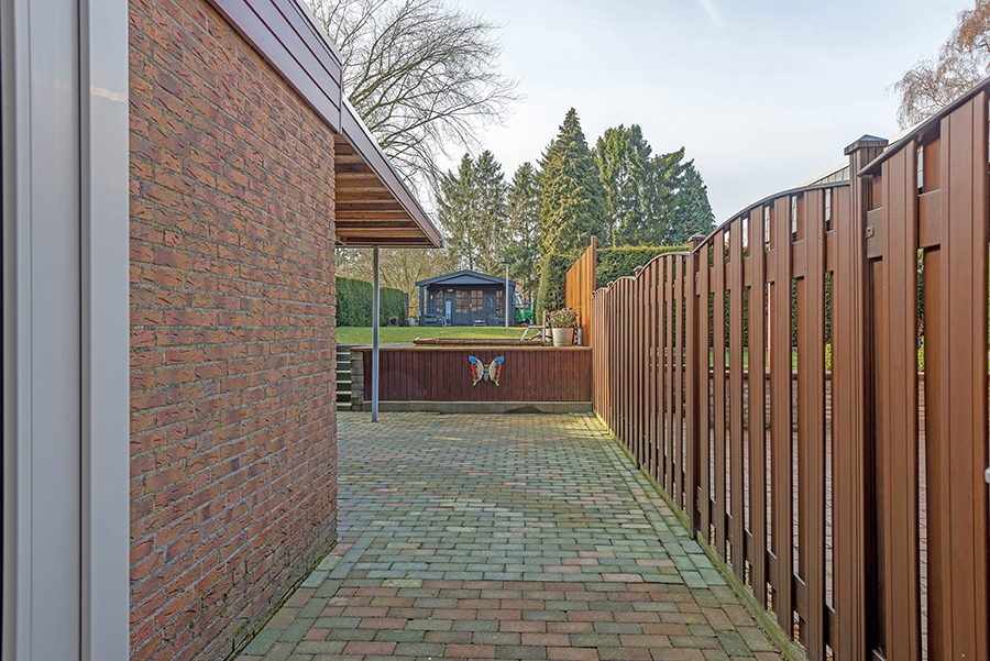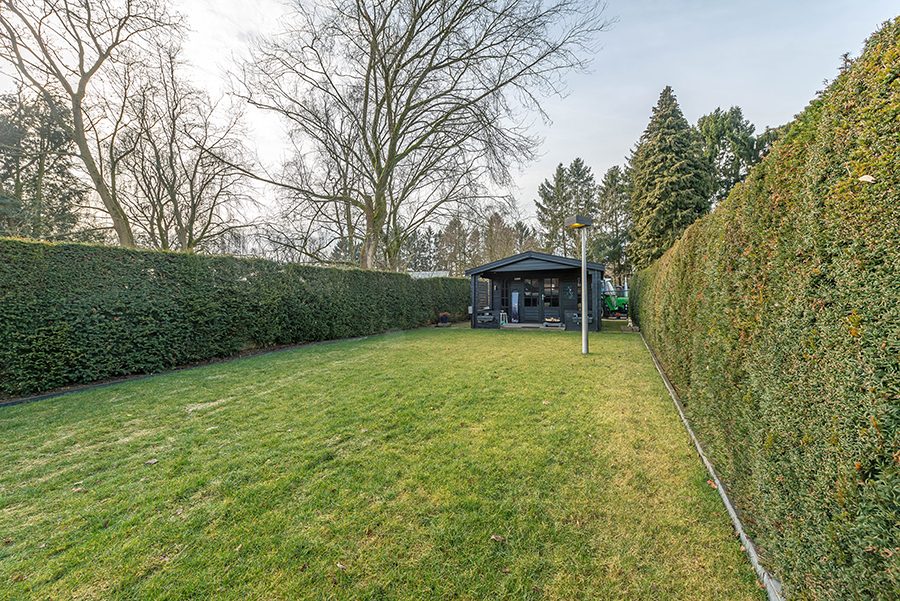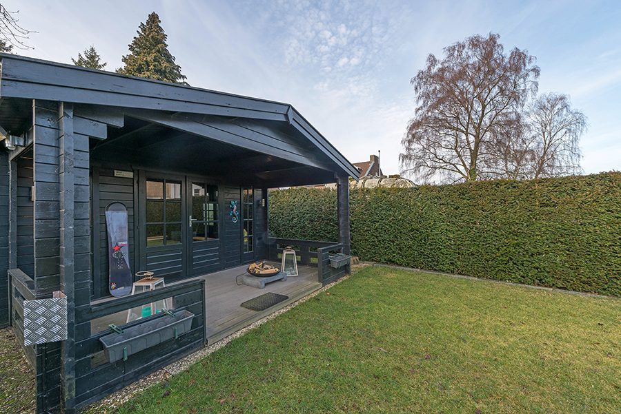 In de achtertuin is fraai chalet gelegen. De tuin in op zuid-west gelegen en biedt optimale privacy.