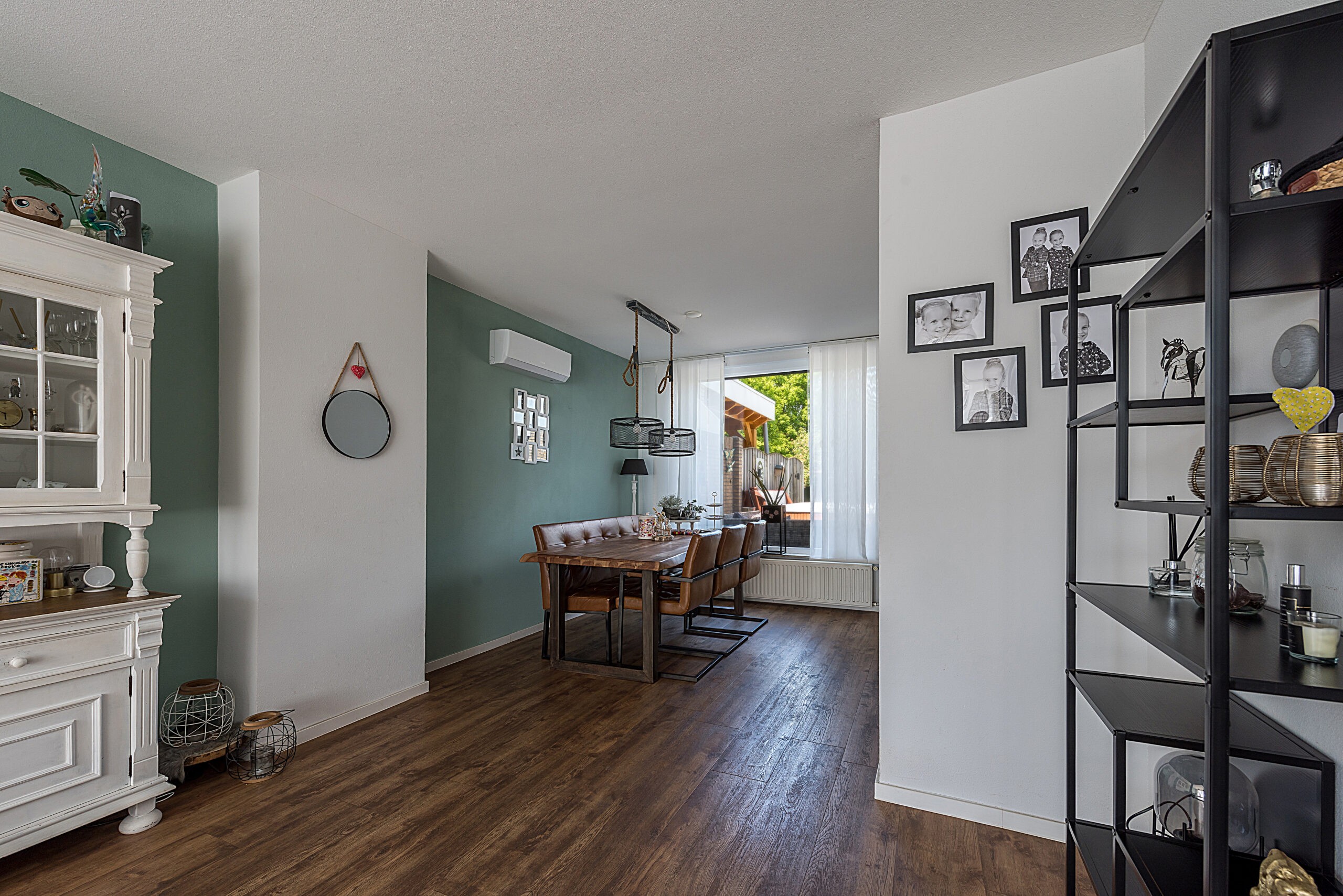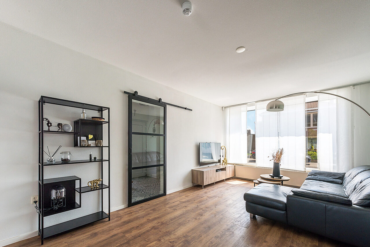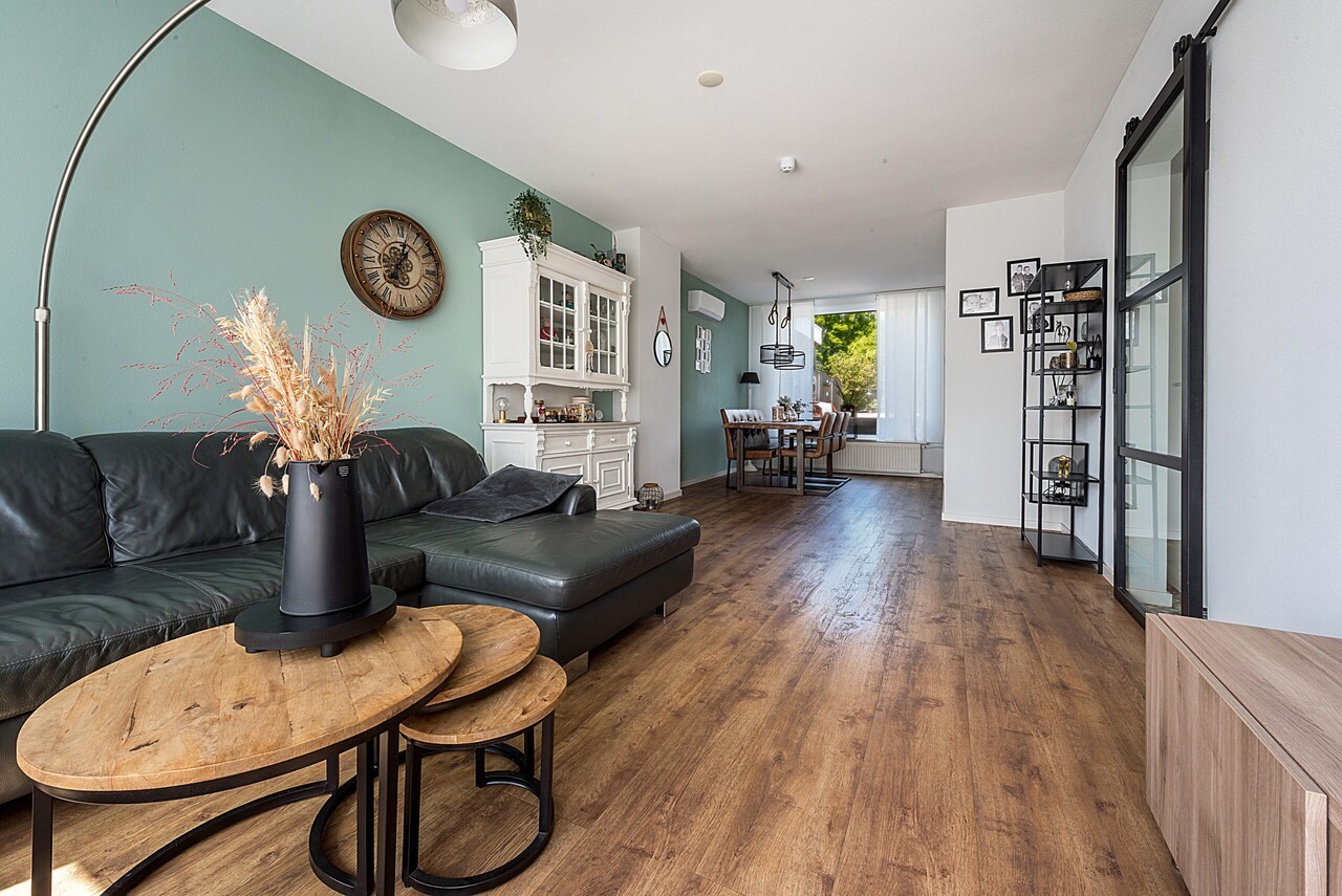 Glazen schuifdeur naar de living ca. 9.40 x 3.60/2.70 met fraaie pvc vloer.