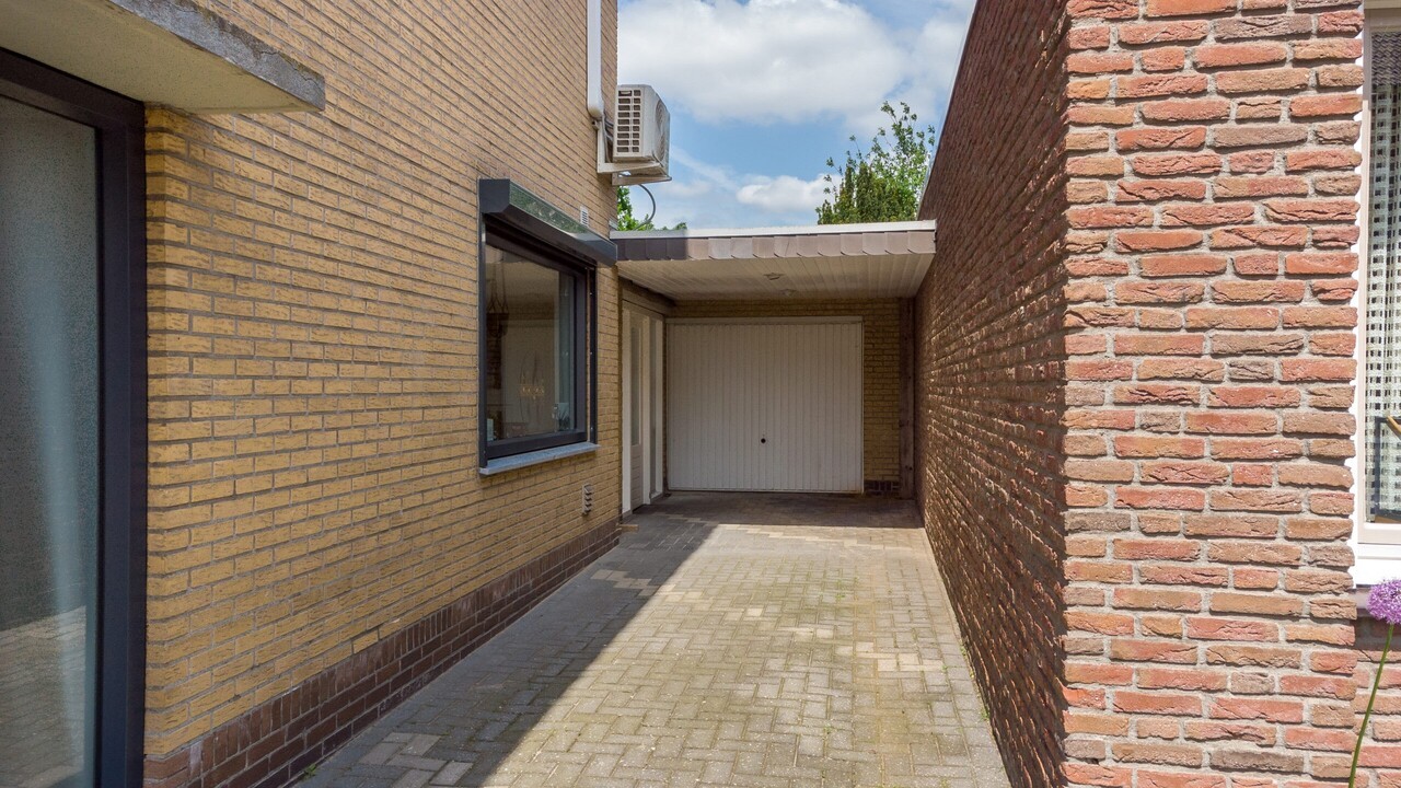 Terras met zij-uitgang naar de carport aan de voorzijde.