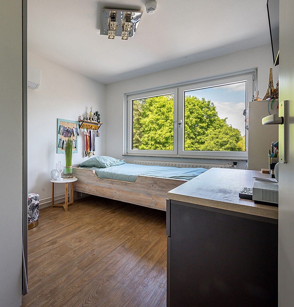 Vaste trap naar slaapkamer ca. 4.80 x 3.60 met dakkapel en airco.