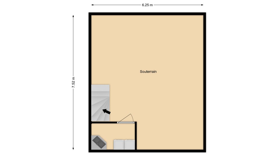 Geheel onderkelderd ca 7.52 x 6.20 met cv-combiketel (eigendom) en wasruimte met aansluitpunten witgoed en wasbak.