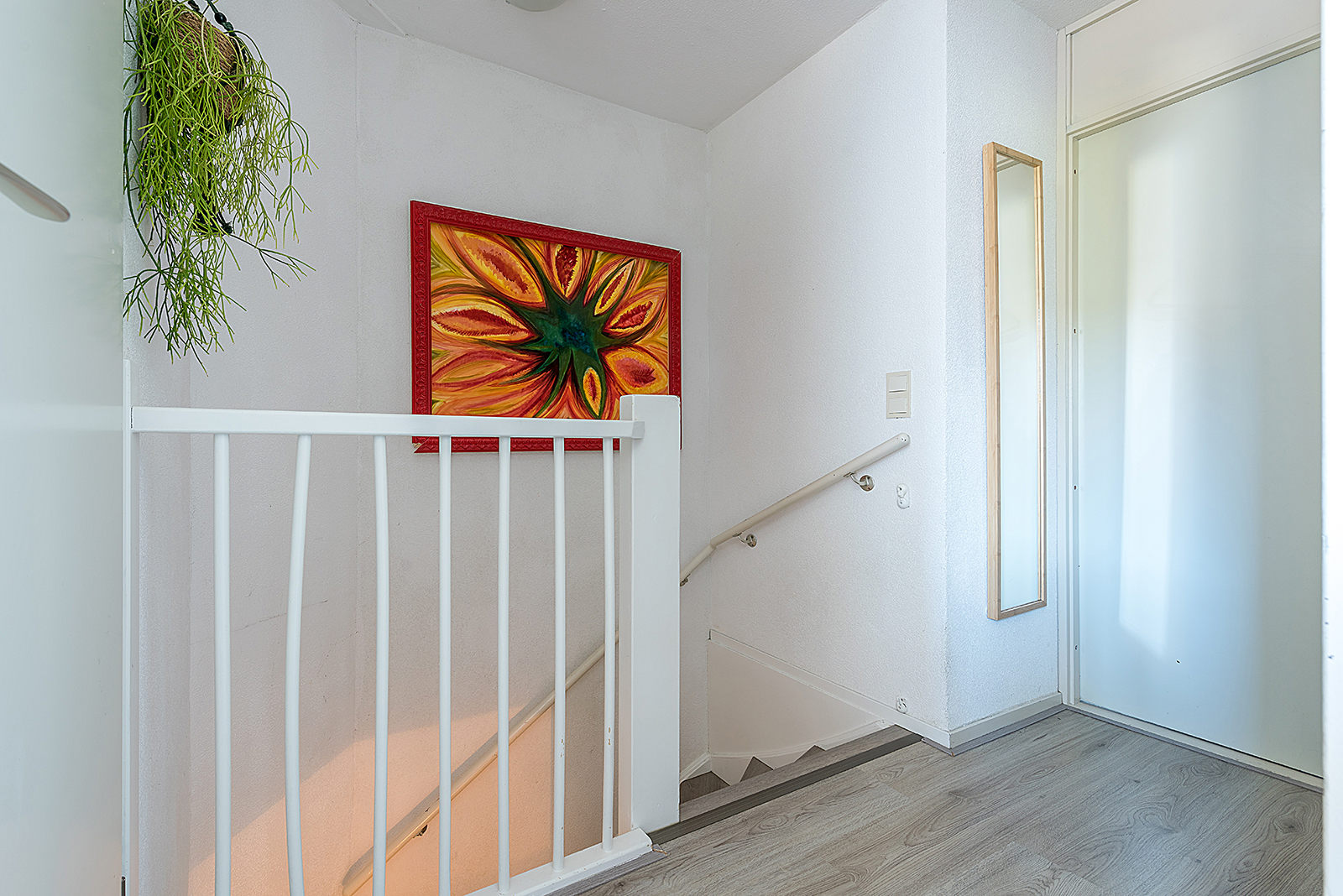 Tussenportaal met gastentoilet en trap naar de verdieping.