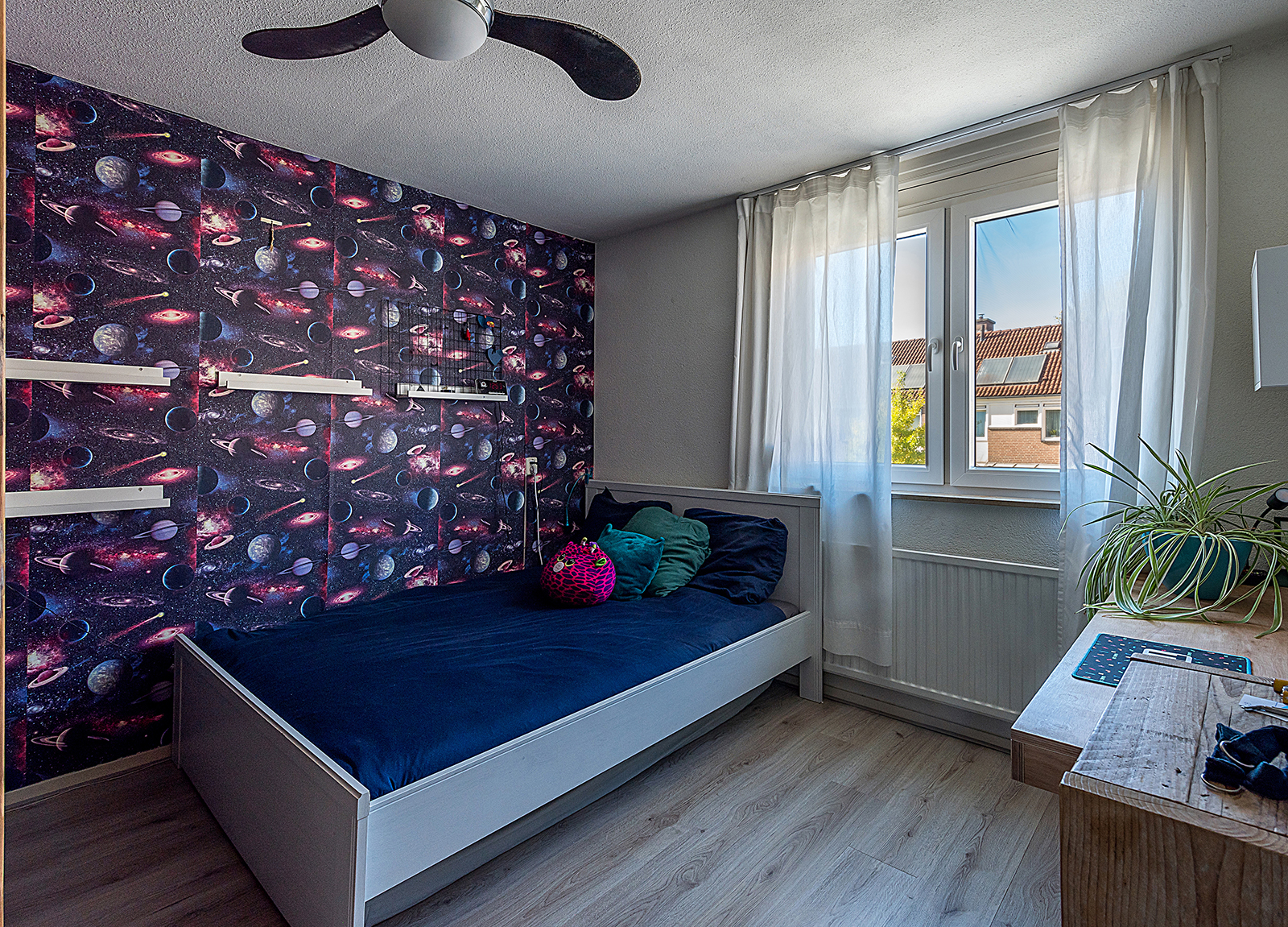 Overloop met laminaatvloer, drie ruime slaapvertrekken resp ca. 4.55 x 2.75, 4.50 x 2.50 en 3.88 x 3.30.