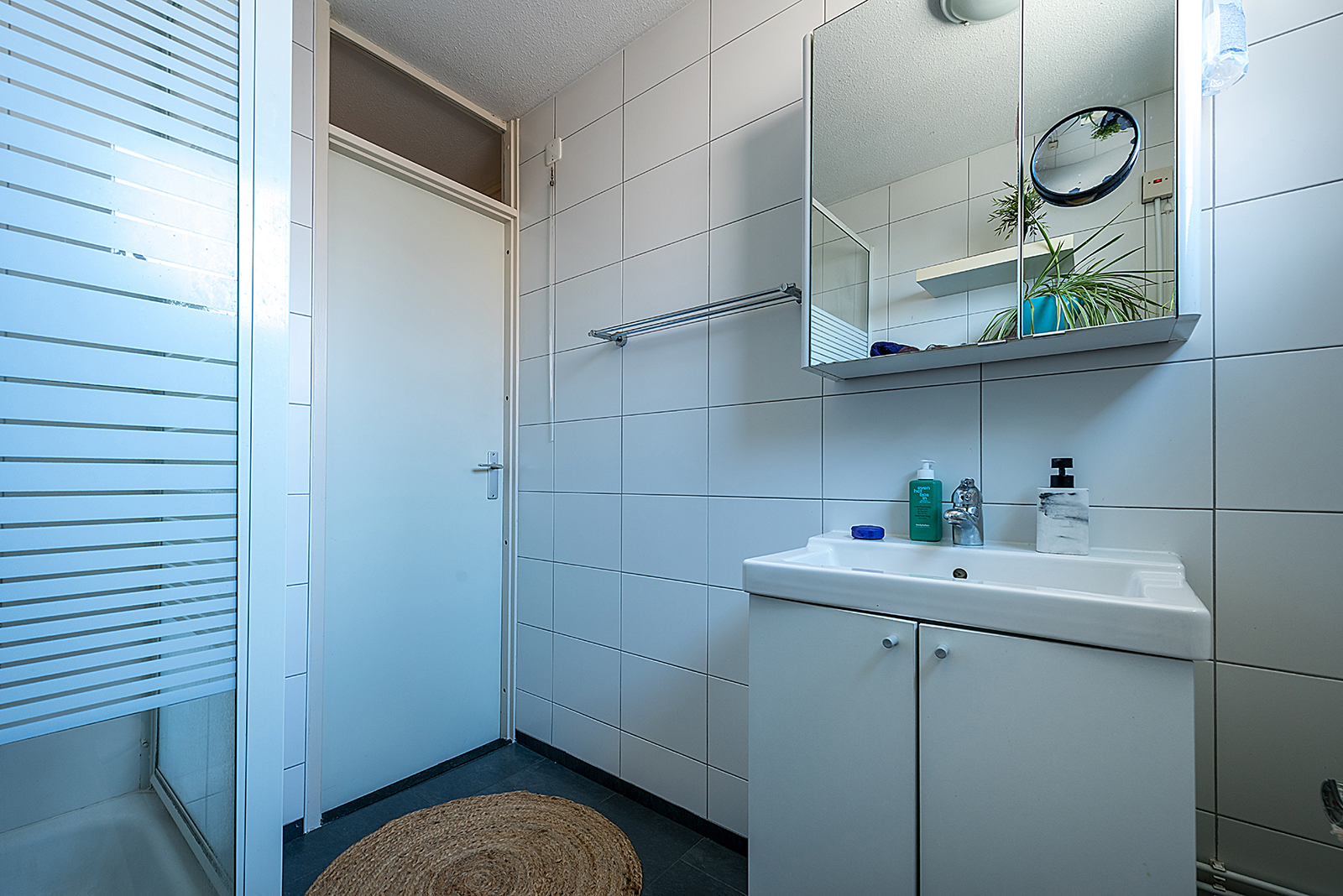 Badkamer ca. 2.15 x 1.80 met douche, wastafel en een 2e toilet.