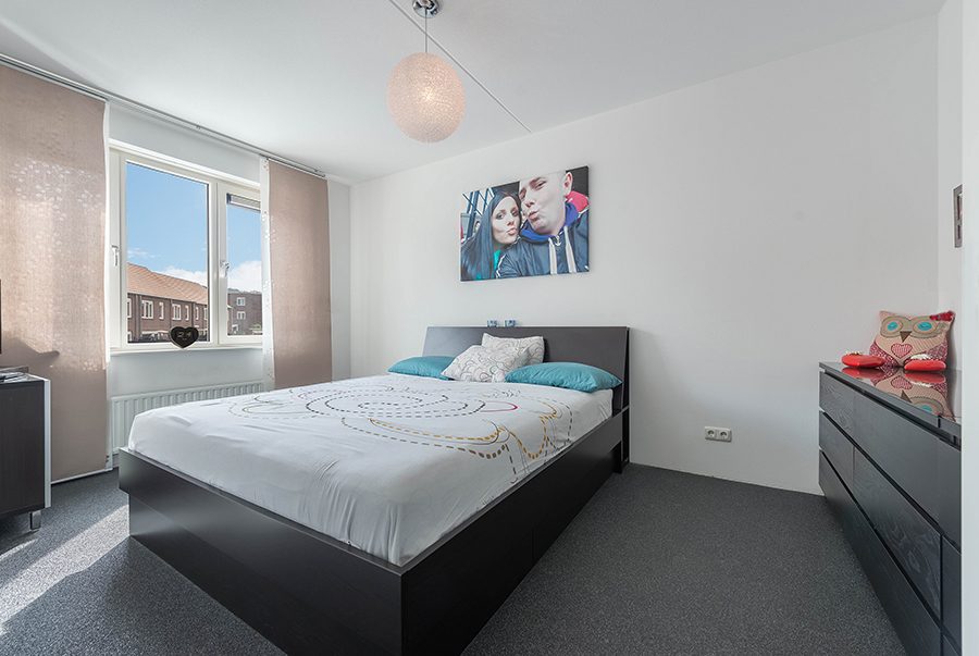 Overloop, met grindvloer, drie ruime slaapkamers resp. ca. 4.65×2.90, 3.57×2.50 en 2.95×2.15. Alle voorzien van een grindvloer.