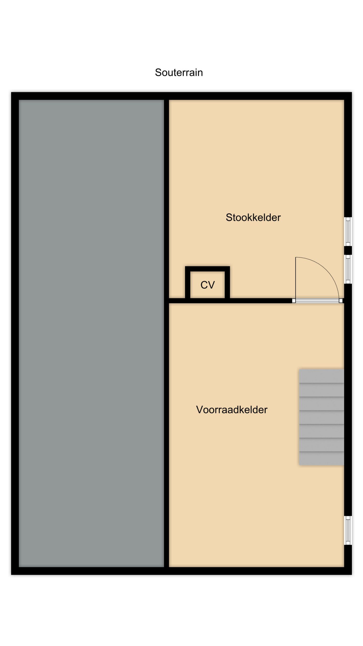 Voorraadkelder ca. 5.00 x 3.00 en stookkelder ca. 3.80 x 2.60.