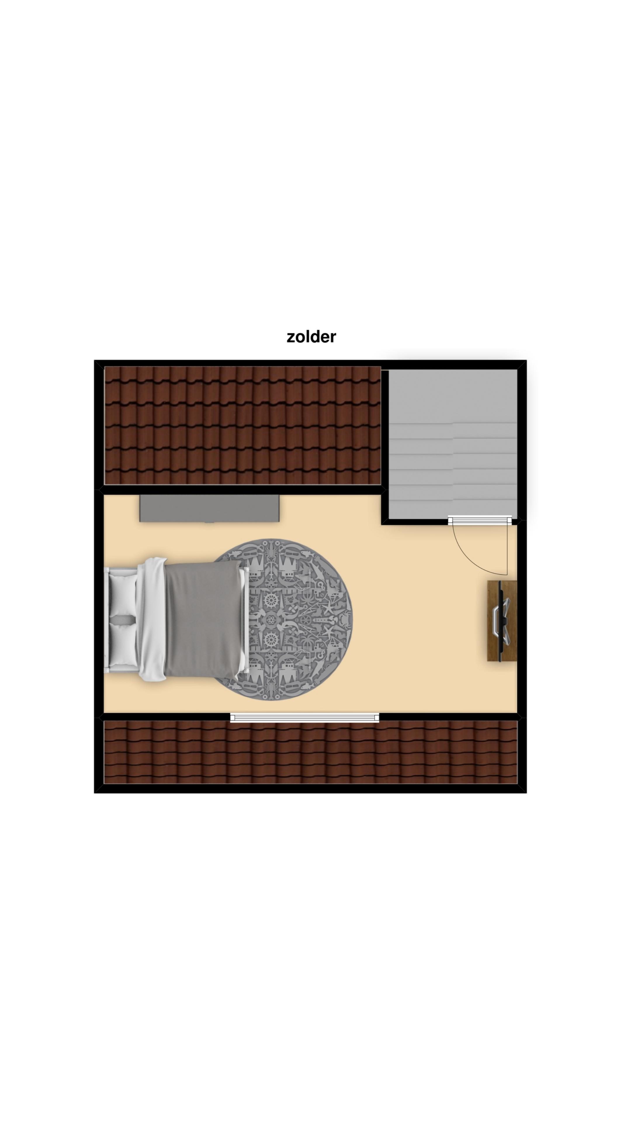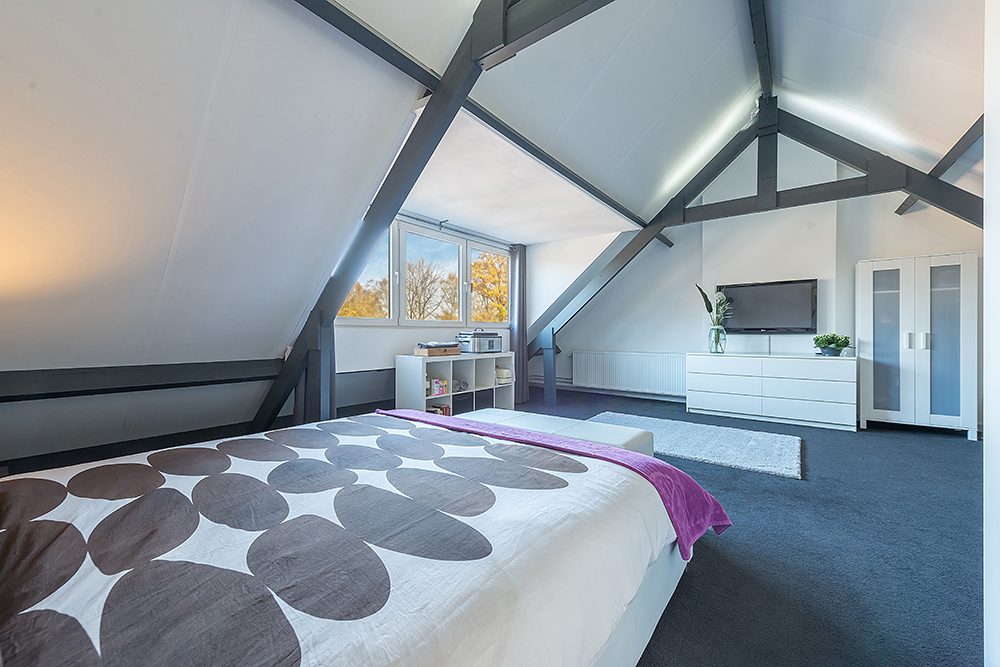 Grote slaapkamer met dakkapel ca.6.00 x 4.00.