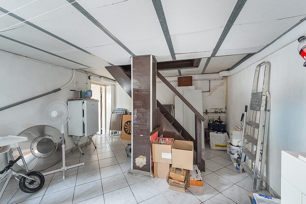 Diverse keldervertrekken met o.a. provisiekelder met tegelvloer, wasruimte met toilet en werkkelder met een (huur) cv-combiketel.