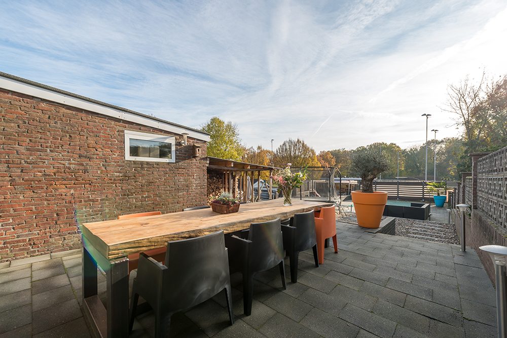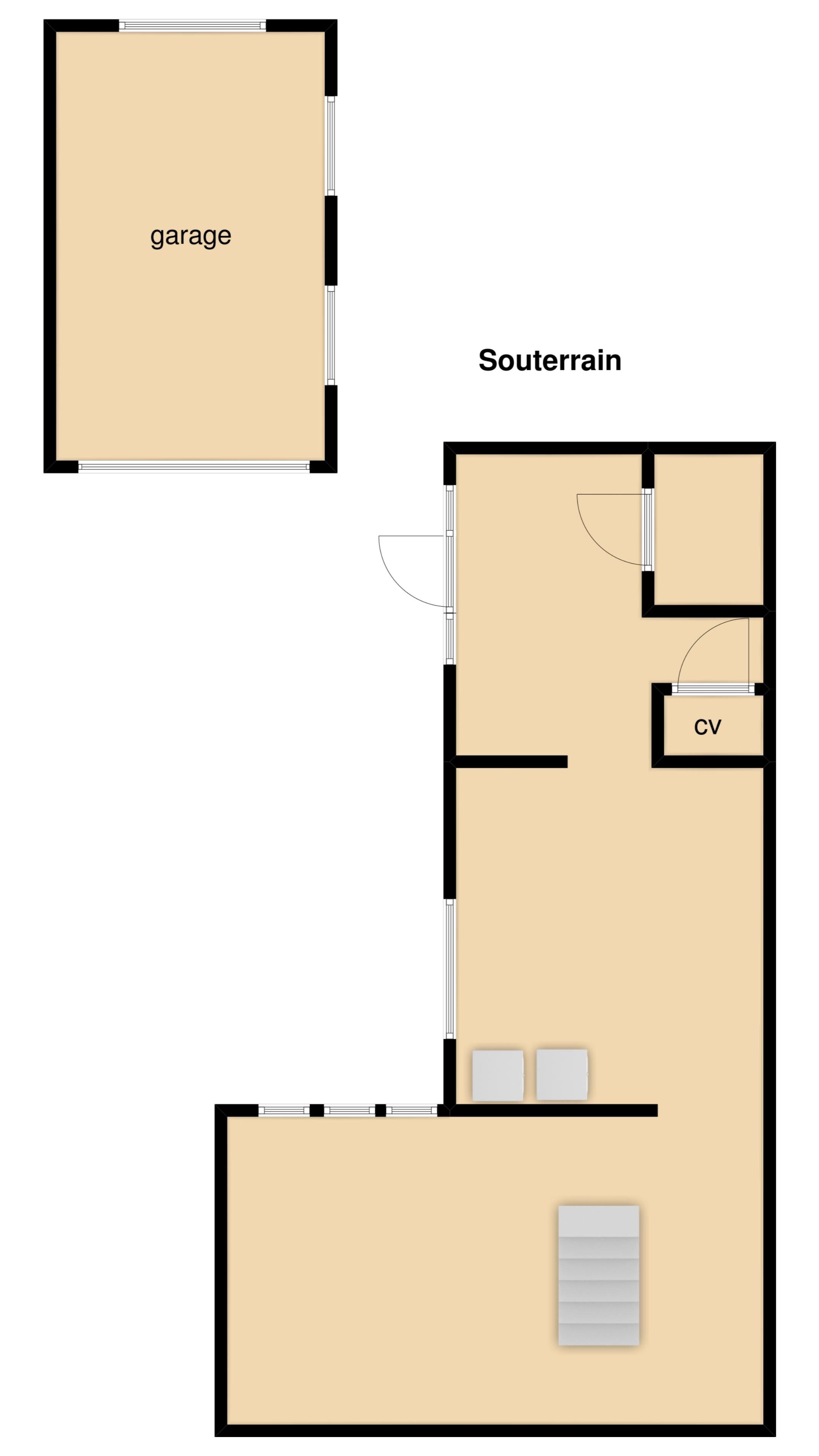 Uitgang naar een verbindingstrap met de lager gelegen tuin.
