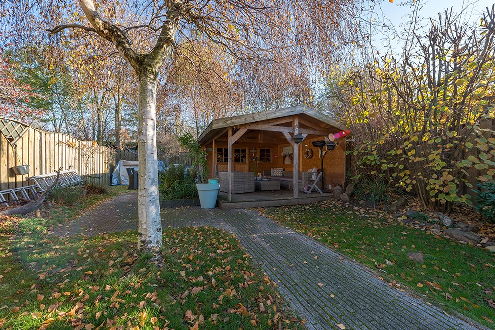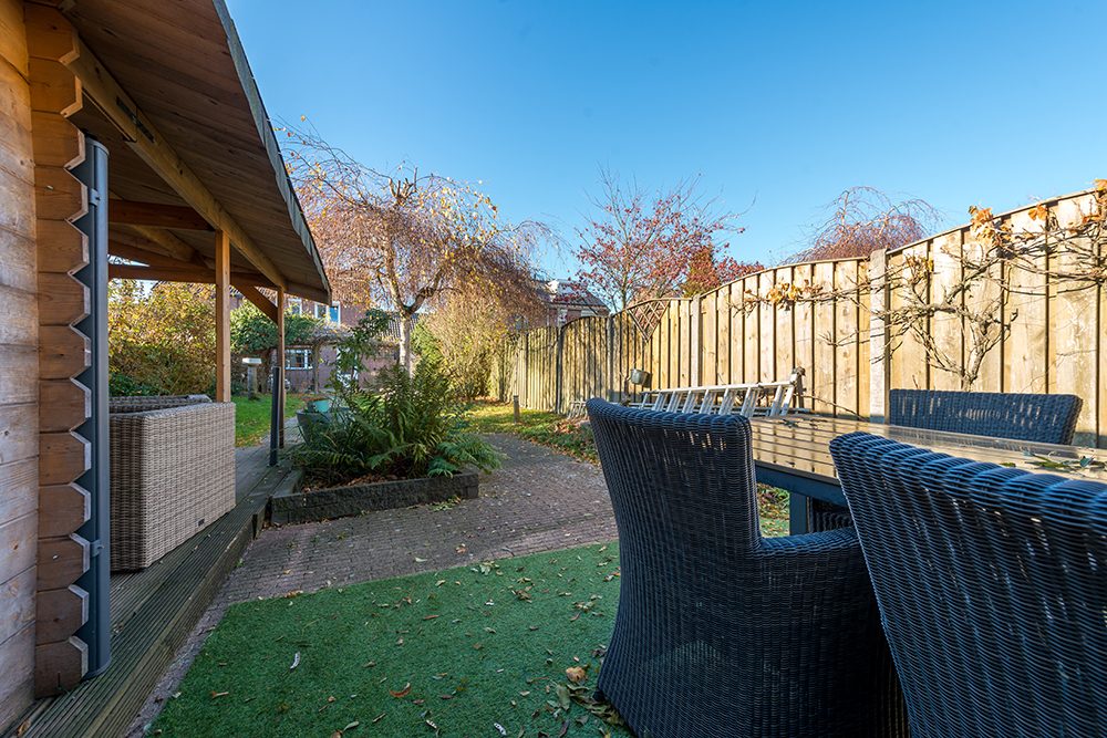 bijkeuken, garage en grote siertuin in rustige woonbuurt gelegen te