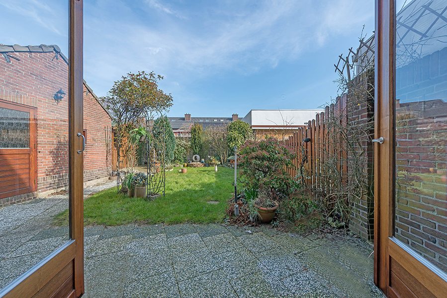 Omsloten siertuin met toegang tot de garage.