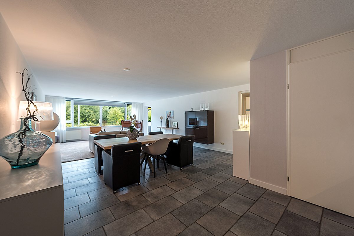 Riante living ca. 8.51 x 5.17 met open verbinding naar de keuken ca. 3.30 x 2.18.