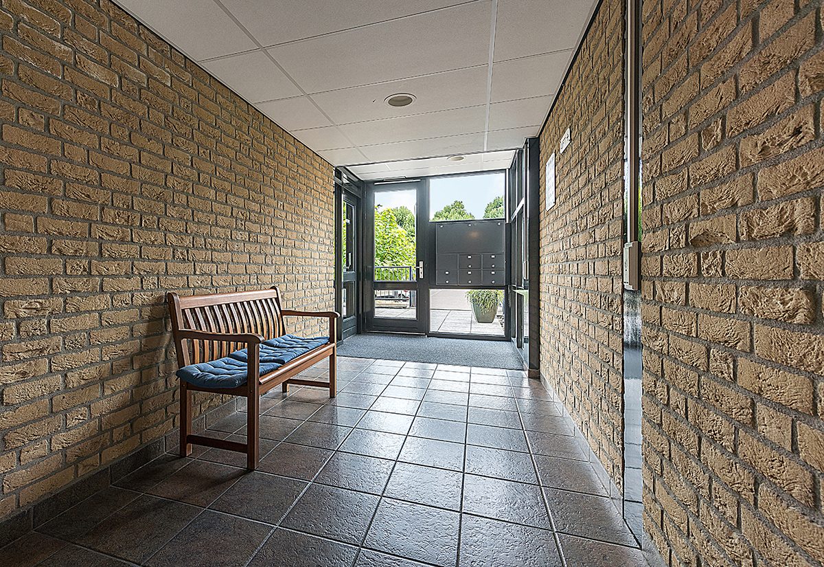 Centrale hal met afgesloten entreepartij en brievenbussen