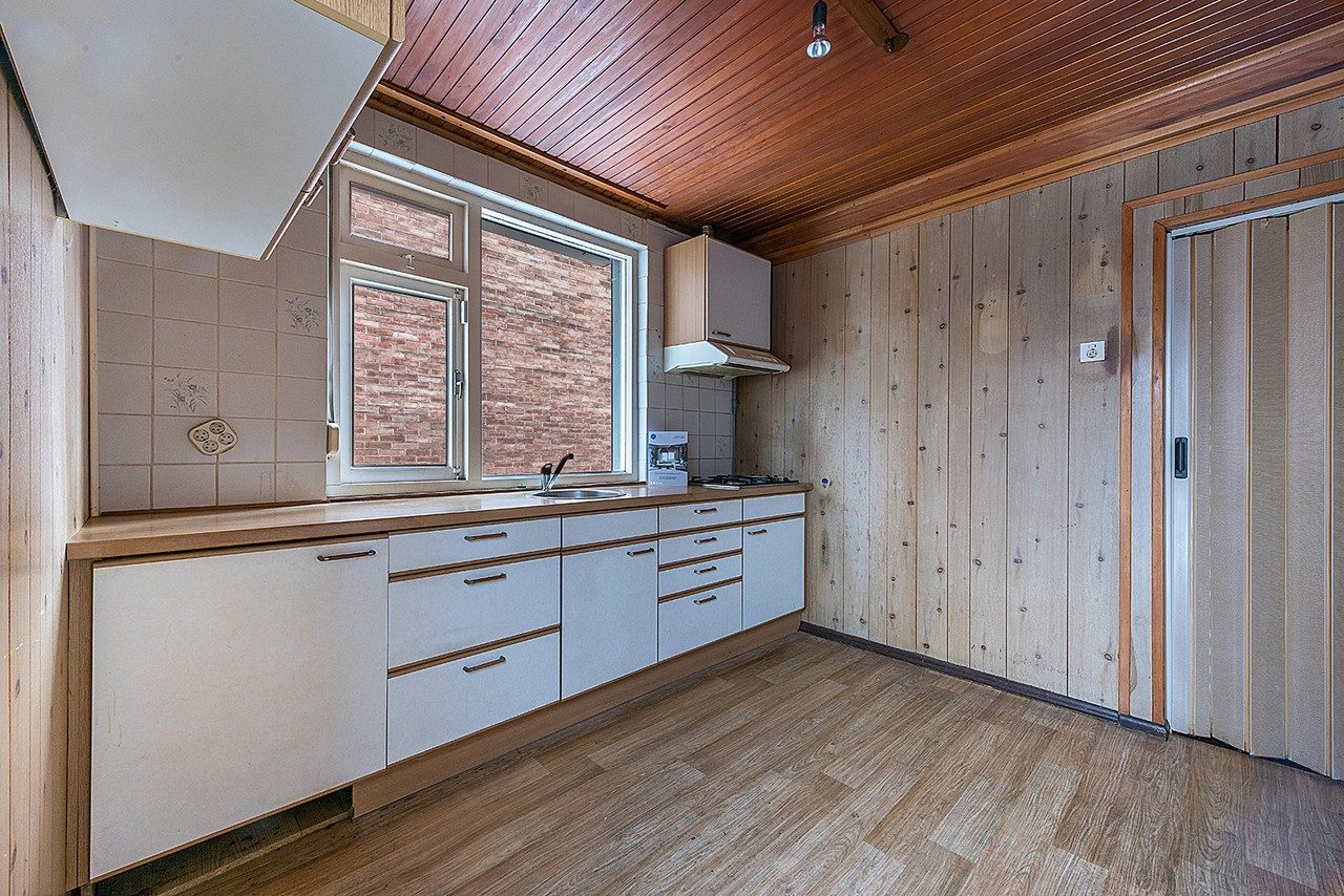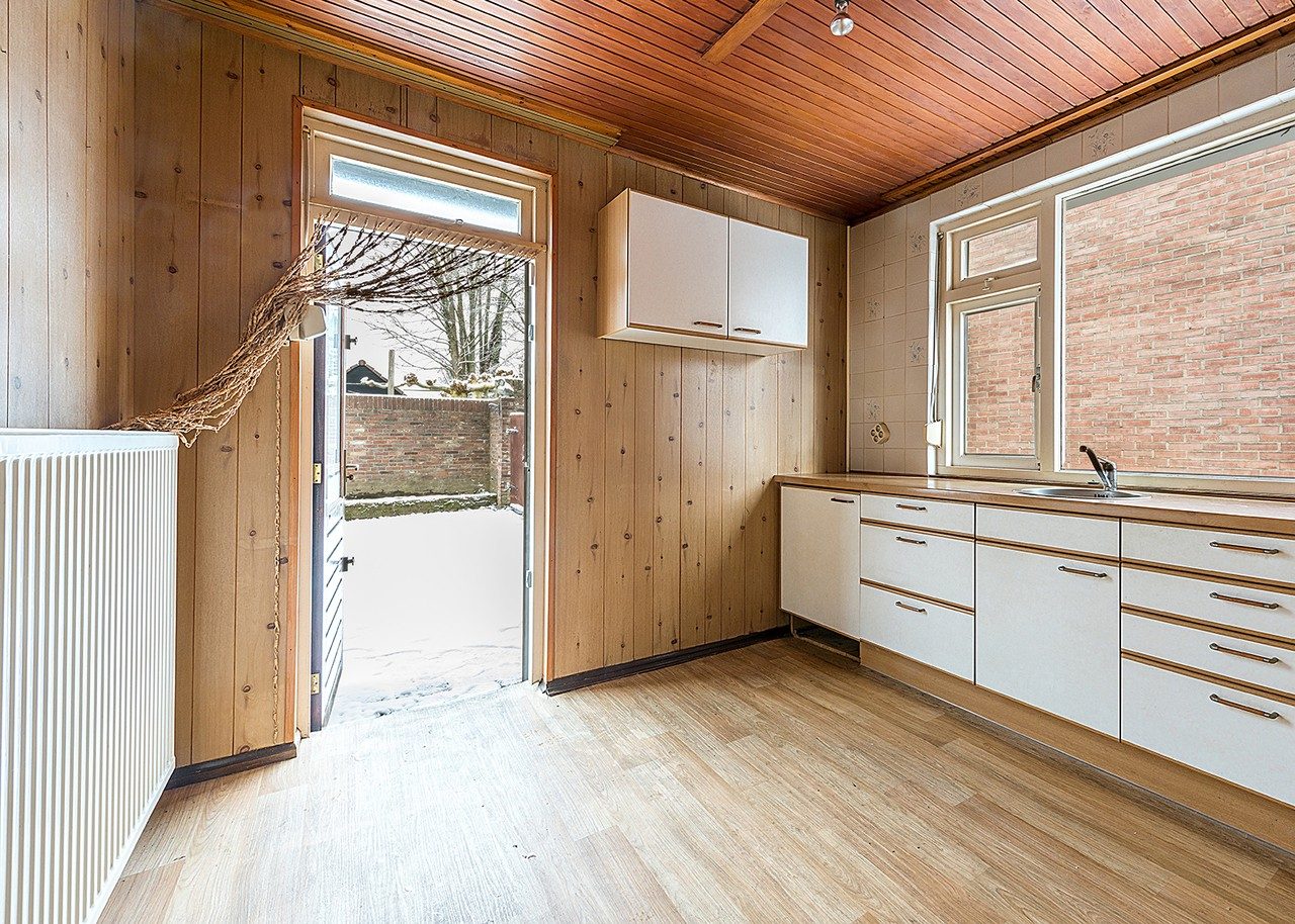 Gesloten keuken ca. 3.40 x 3.00 met eenvoudige keukeninrichting en toegang tot de tuin.