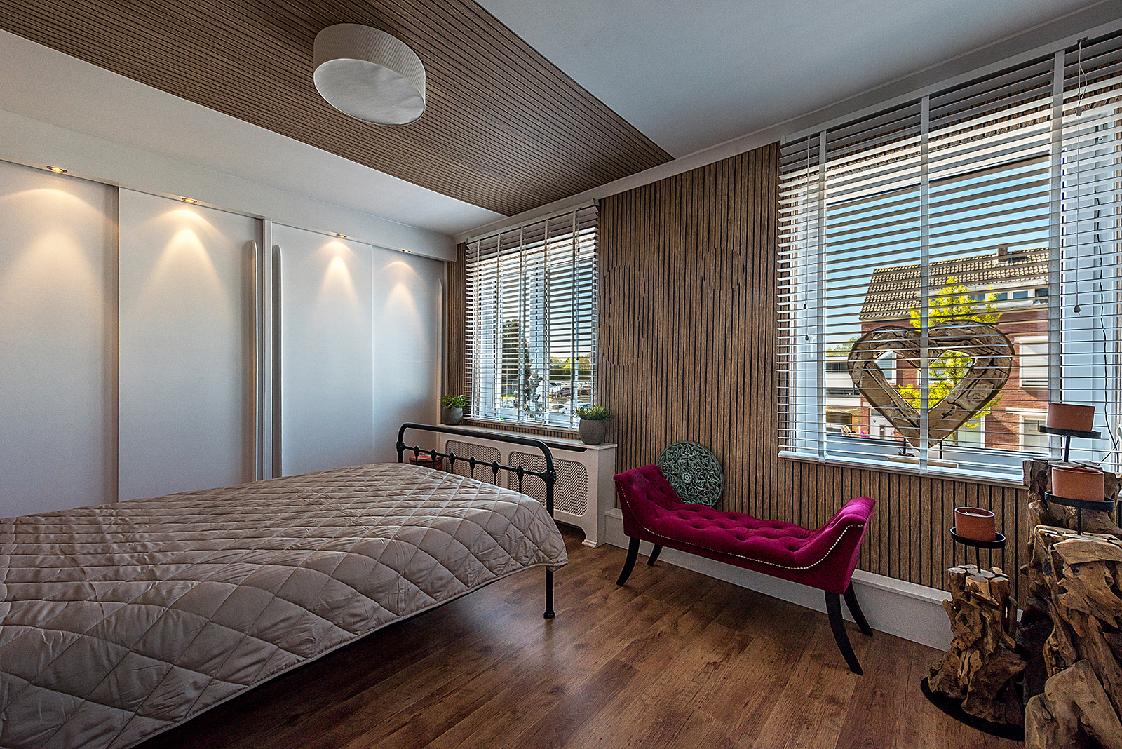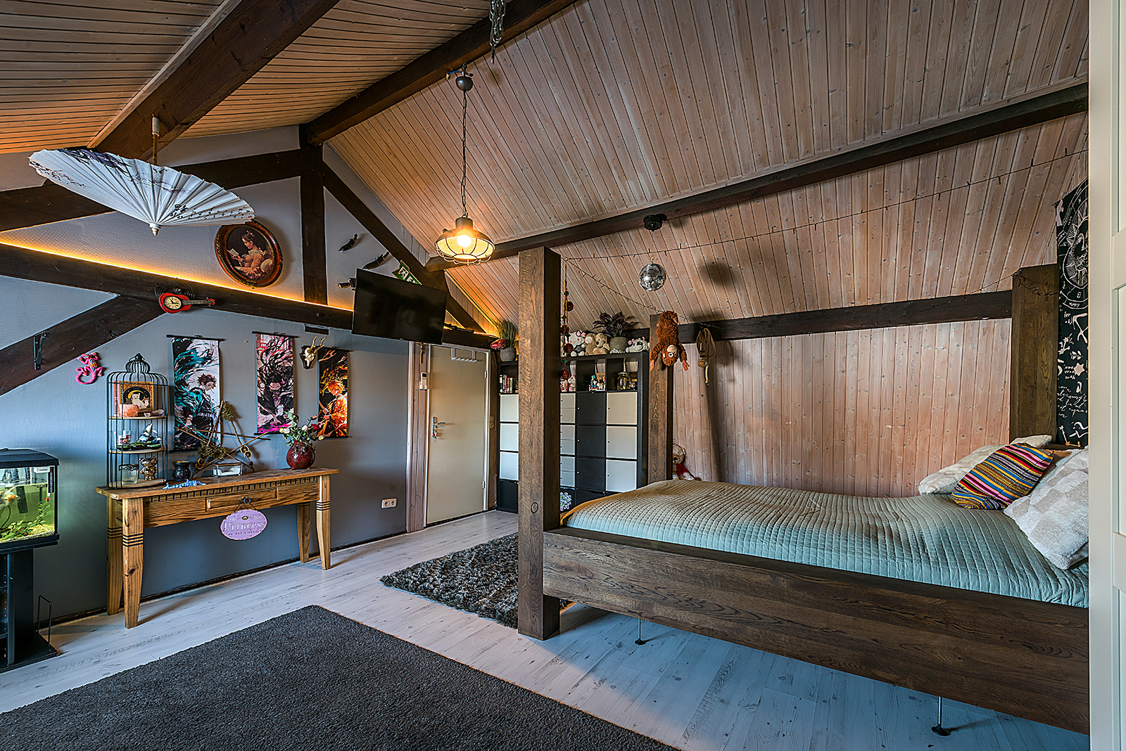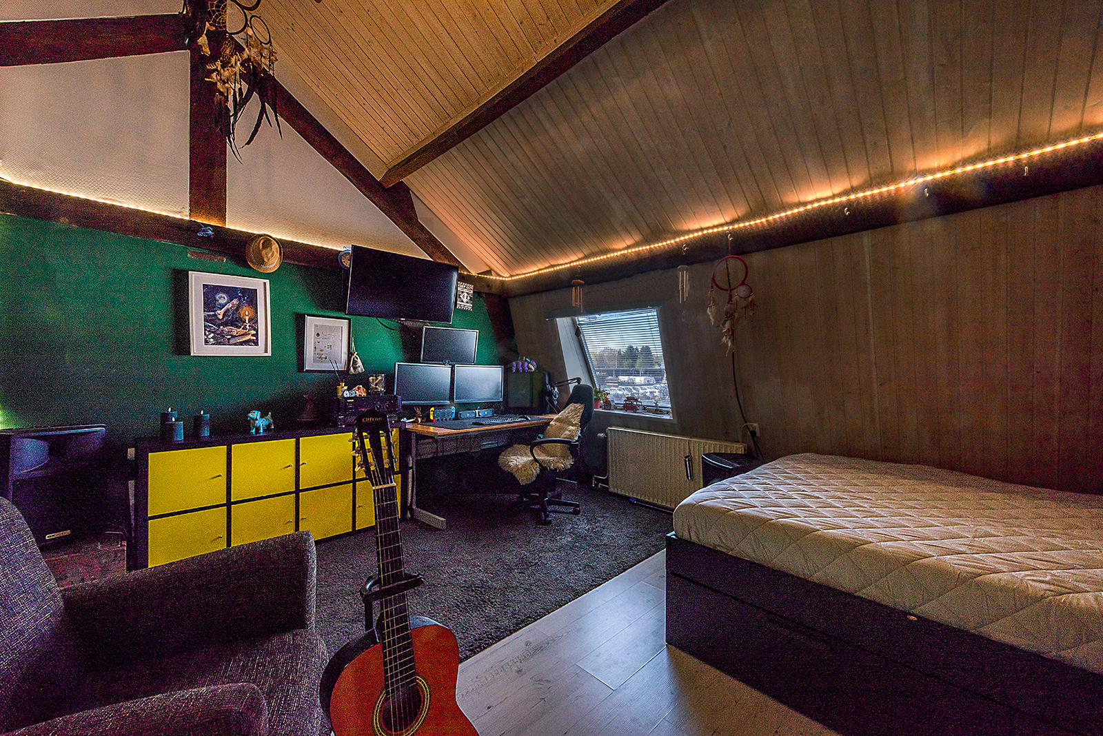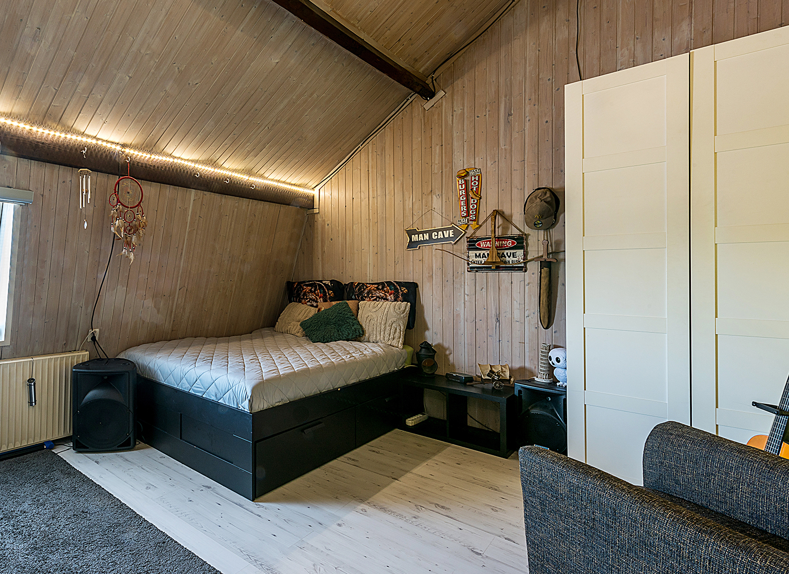 Middels een vaste trap bereikt u de zolderverdieping. Hier bevinden zich twee royale slaapkamers met laminaatvloer, praktische bergkasten en een airco-installatie.
