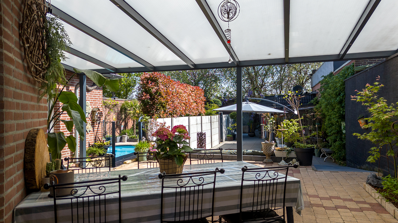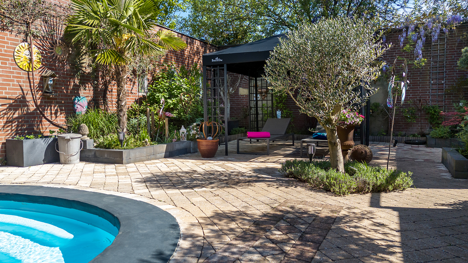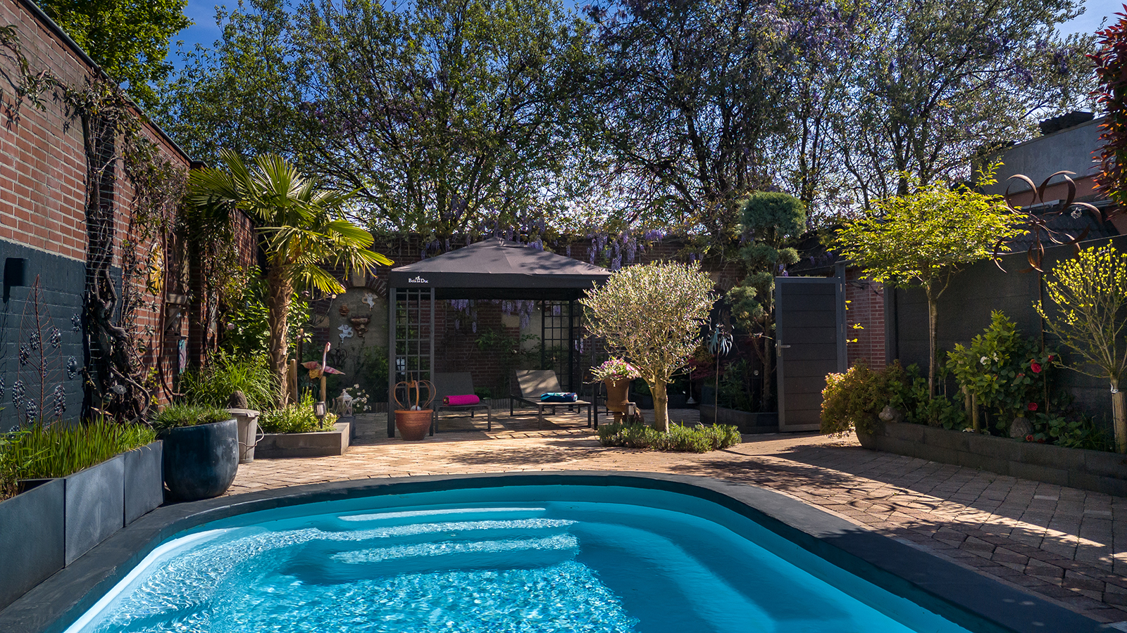 De royale tuin is verzorgd aangelegd en beschikt over een zwembad, een overdekt terras, diverse beplantingen en een stenen omheining die voor optimale privacy zorgt. Dankzij de gunstige ligging kunt u hier volop van de zon genieten.