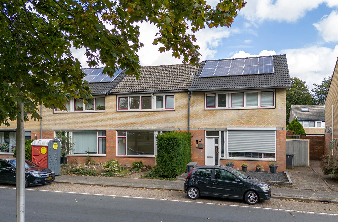 In een rustige woonstraat ruime tussenwoning met vier slaapkamers, tuin en buitenberging