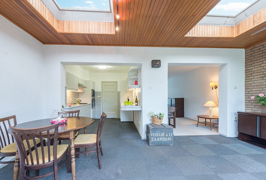 Woonkamer ca. 7.50×3.75/3.00 met aansluitend grote aanbouw over de gehele achterbreedte ca. 5.50×3.00.