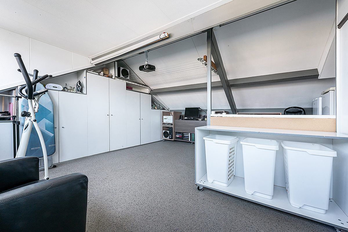 Vaste trap naar een bergzolder met grindvloer, grote dakkapel alwaar mogelijkheid voor een 4e slaapkamer. Bergkasten onder de kap.