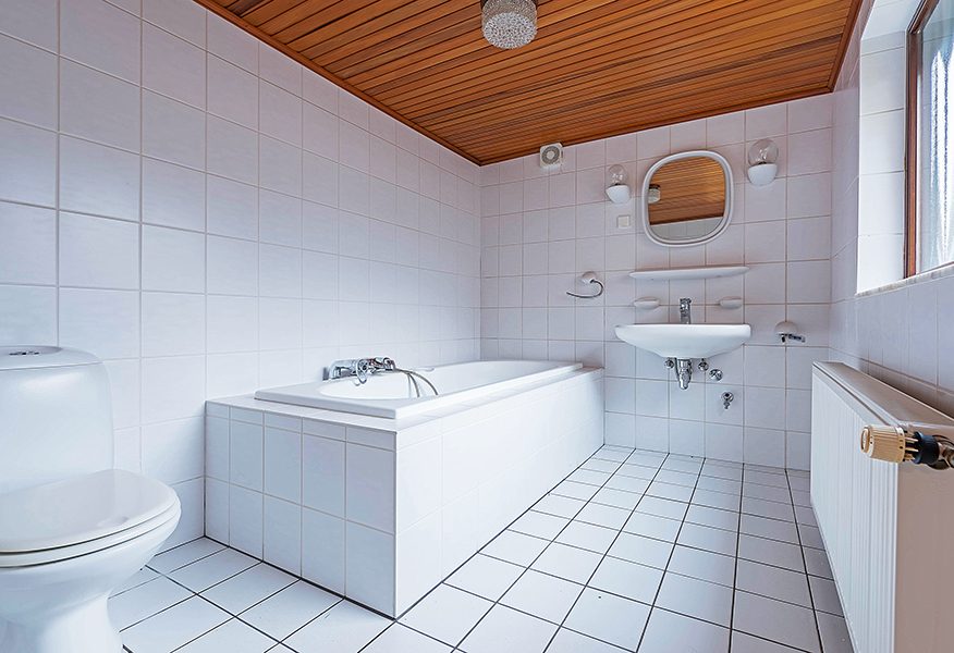 Gemoderniseerde badkamer ca. 2.90×2.20 met ligbad, wastafel en toilet.