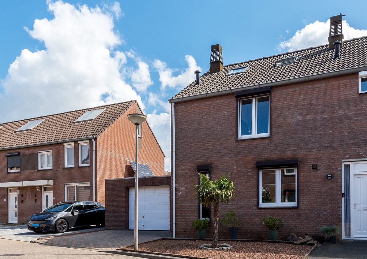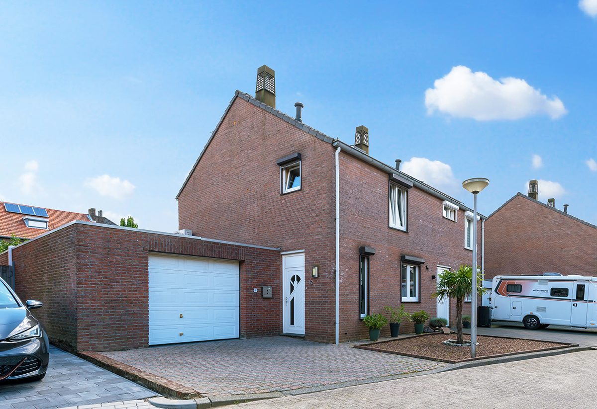 In een rustige kindvriendelijke woonstraat 2 onder 1 kap woning met aanbouw, garage en siertuin