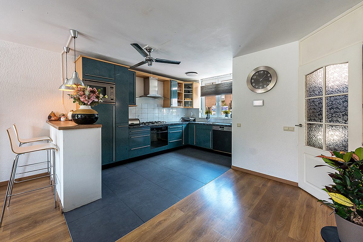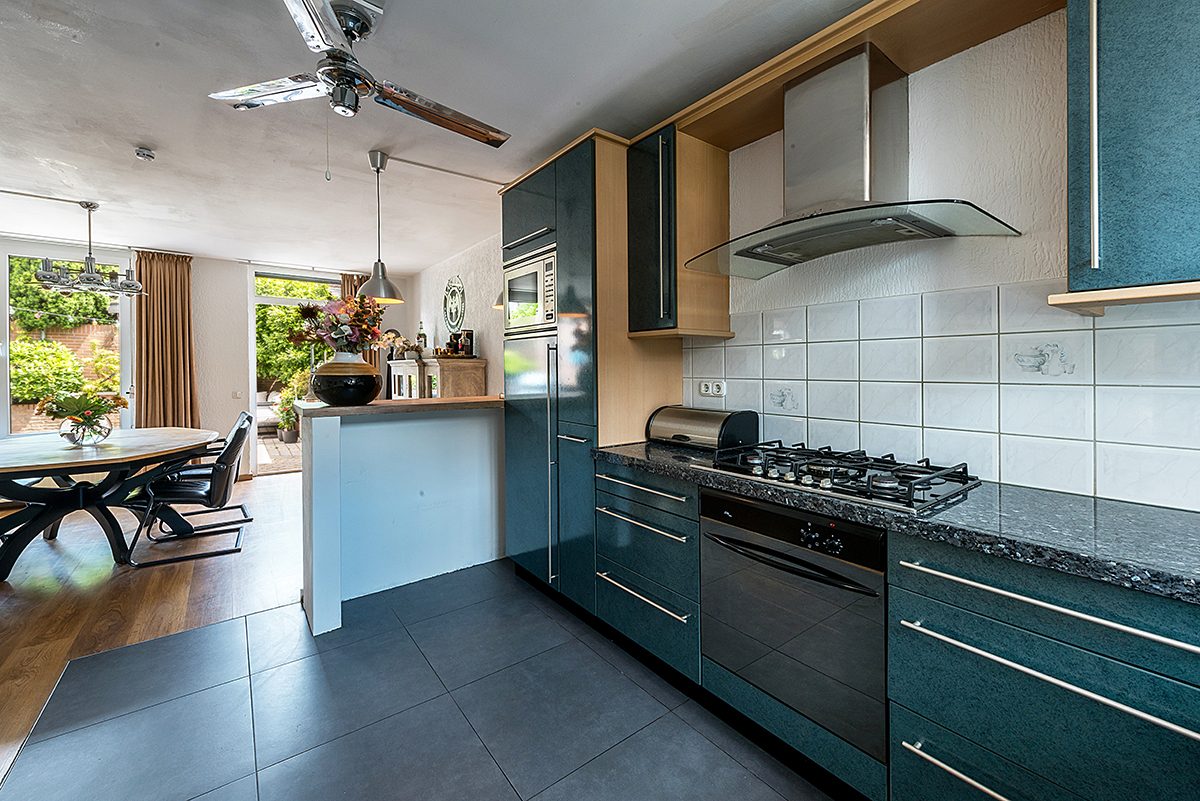 Royale keuken ca. 4.00 x 3.00 met aanbouwkeuken v.v. gascomfort, oven, afzuigkap, magnetron, koelkast en vaatwasser.