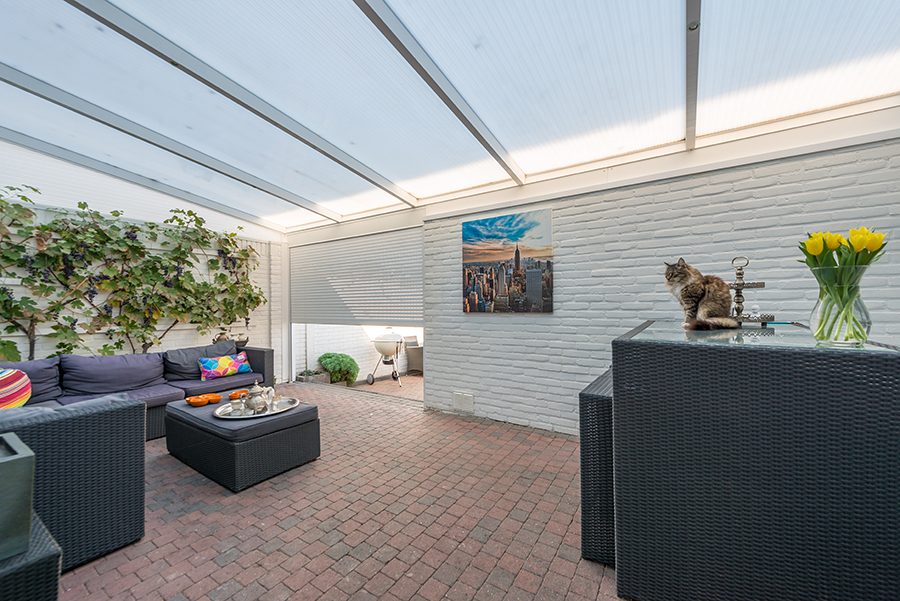 Gezellige serre ca. 6.00 x 3.40 met electrisch rolluik en inbouw halogeenverlichting.