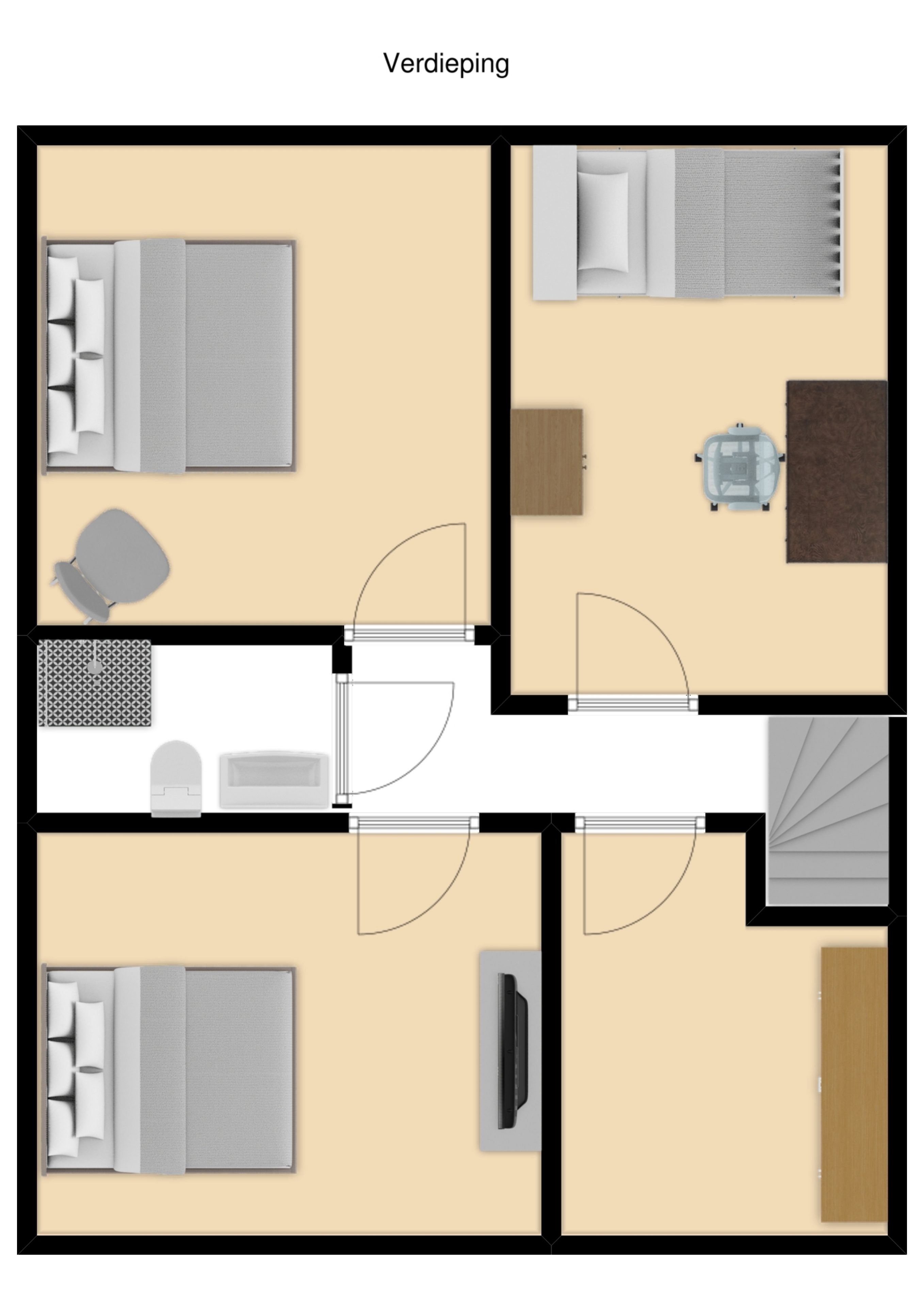 Overloop met laminaatvloer,vier slaapkamers resp. ca.3.65 x 3.30, 4.00 x 2.70, 3.90 x 3.05 en 2.11 x 2.30.