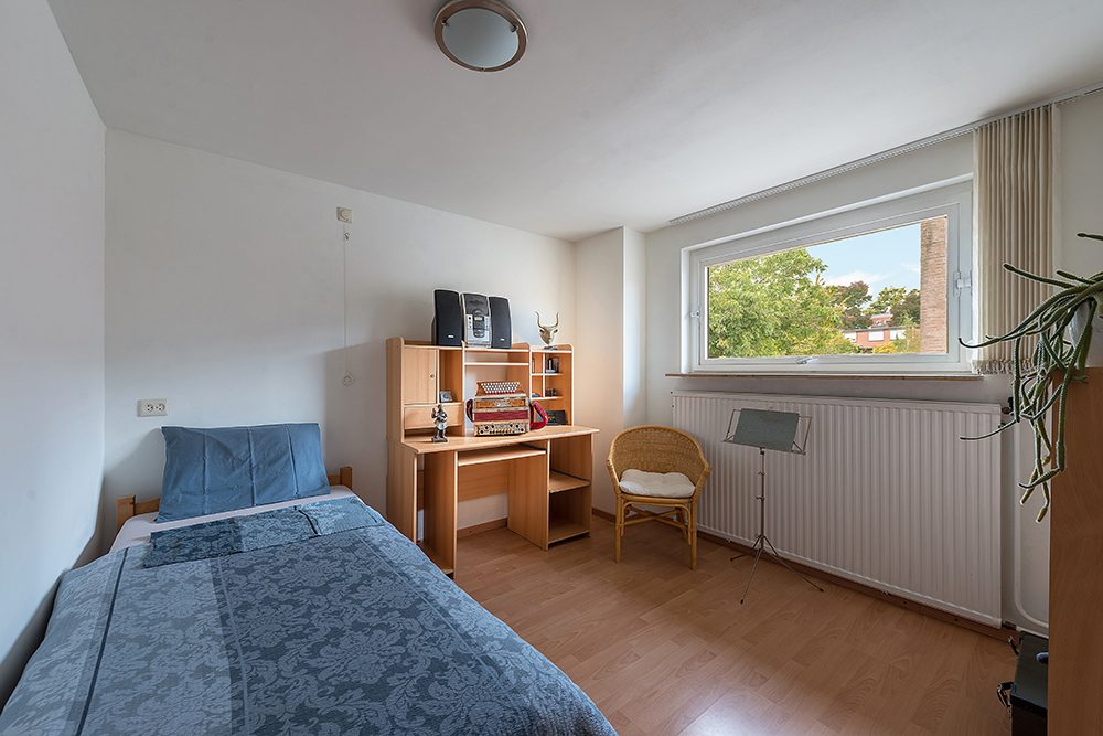 Overloop, drie slaapkamers resp. ca. 3.50 x 3.20, 4.00 x 3.00 en 3.50 x 1.85. Alle v.v. een laminaatvloer.