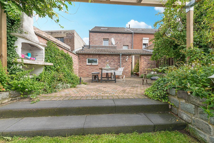 De tuin is v.v. van tuinhuis, gazon en zonneterras. Middels pad aan achterzijde bereikbaar.